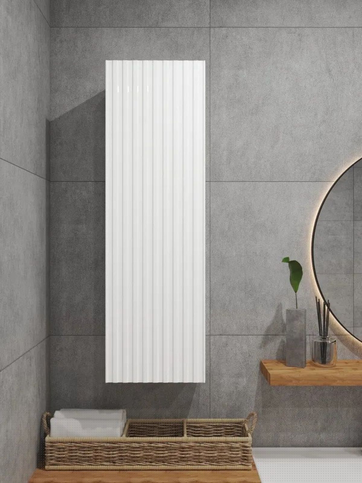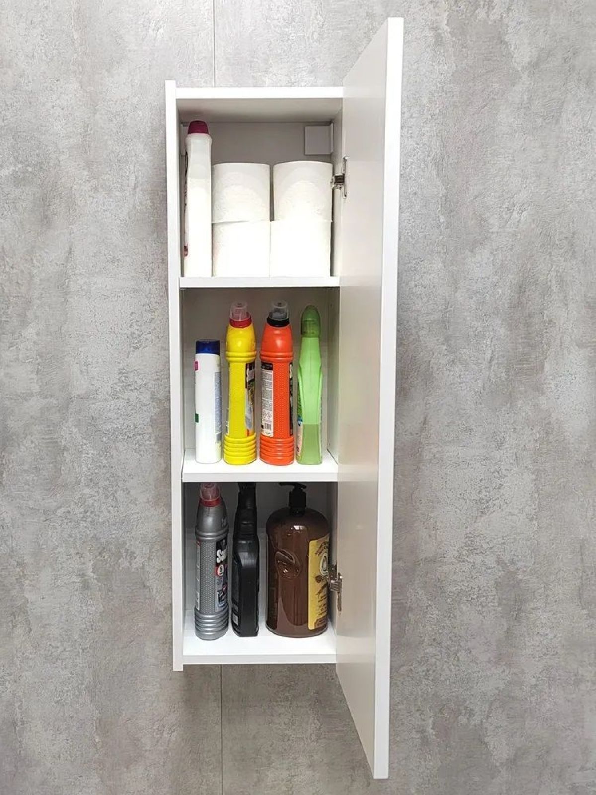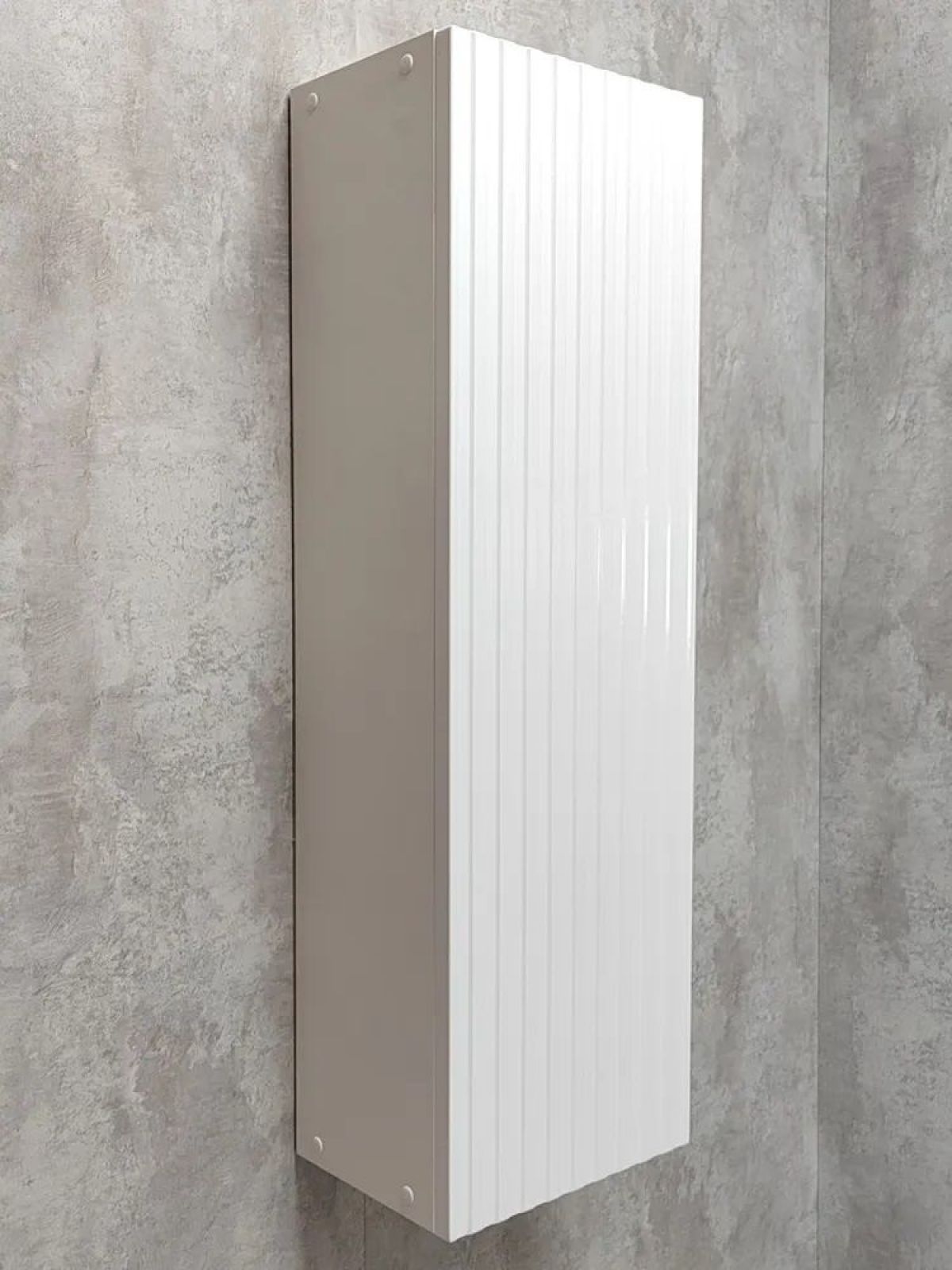 Белый шкаф с рифлёным фасадом будет отлично и стильно смотреться как в ванной, так и в туалете.