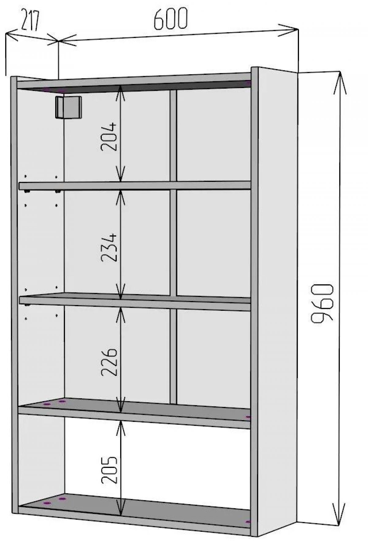 Шкаф навесной для ванной комнаты и туалета MH22-MA 960х600х217 (Белый-М 10.1.1) Белый глянец