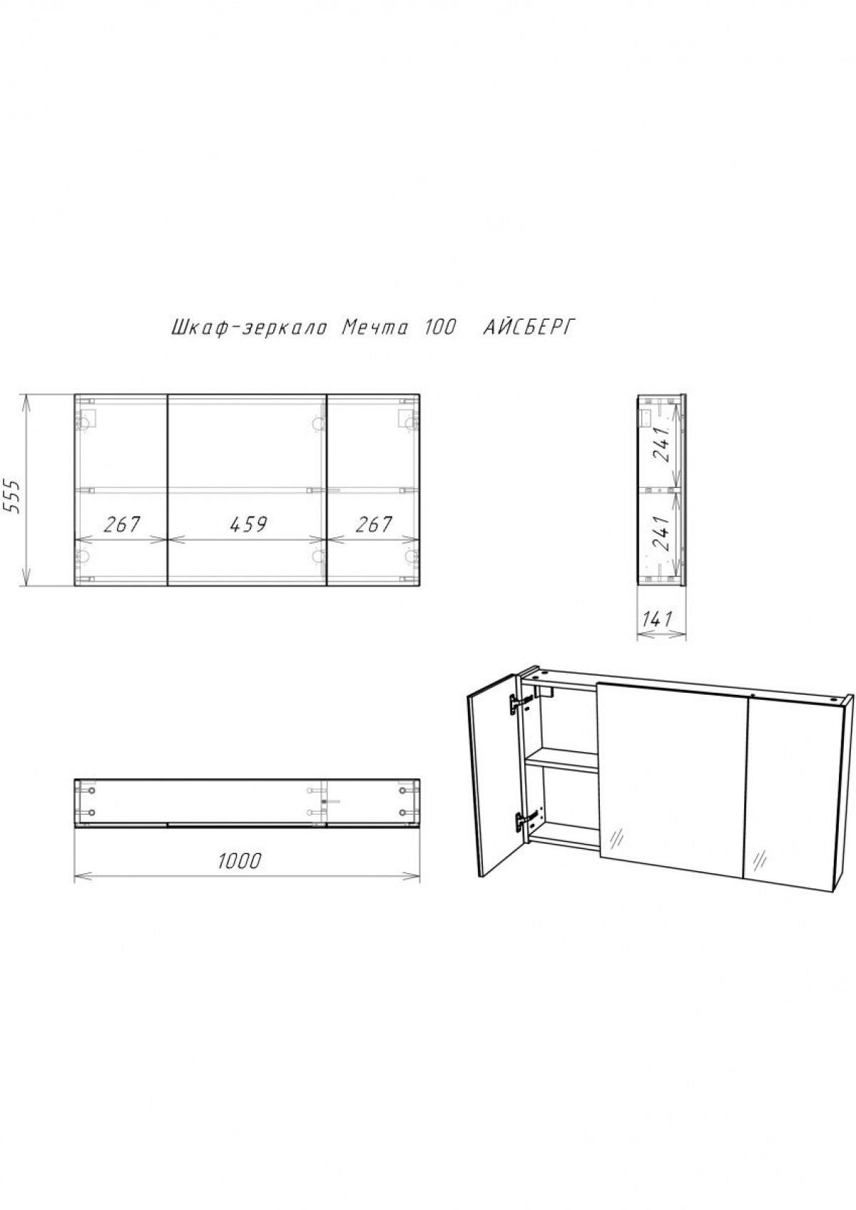 Шкаф-зеркало Мечта 100 АЙСБЕРГ (DM2322HZ)