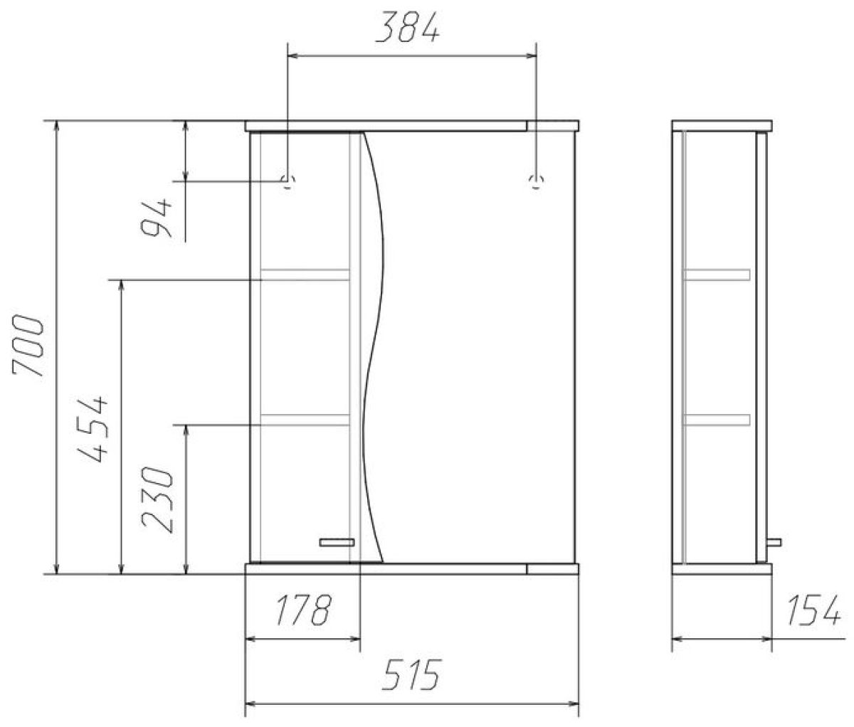 Шкаф-зеркало Волна 50 левый АЙСБЕРГ