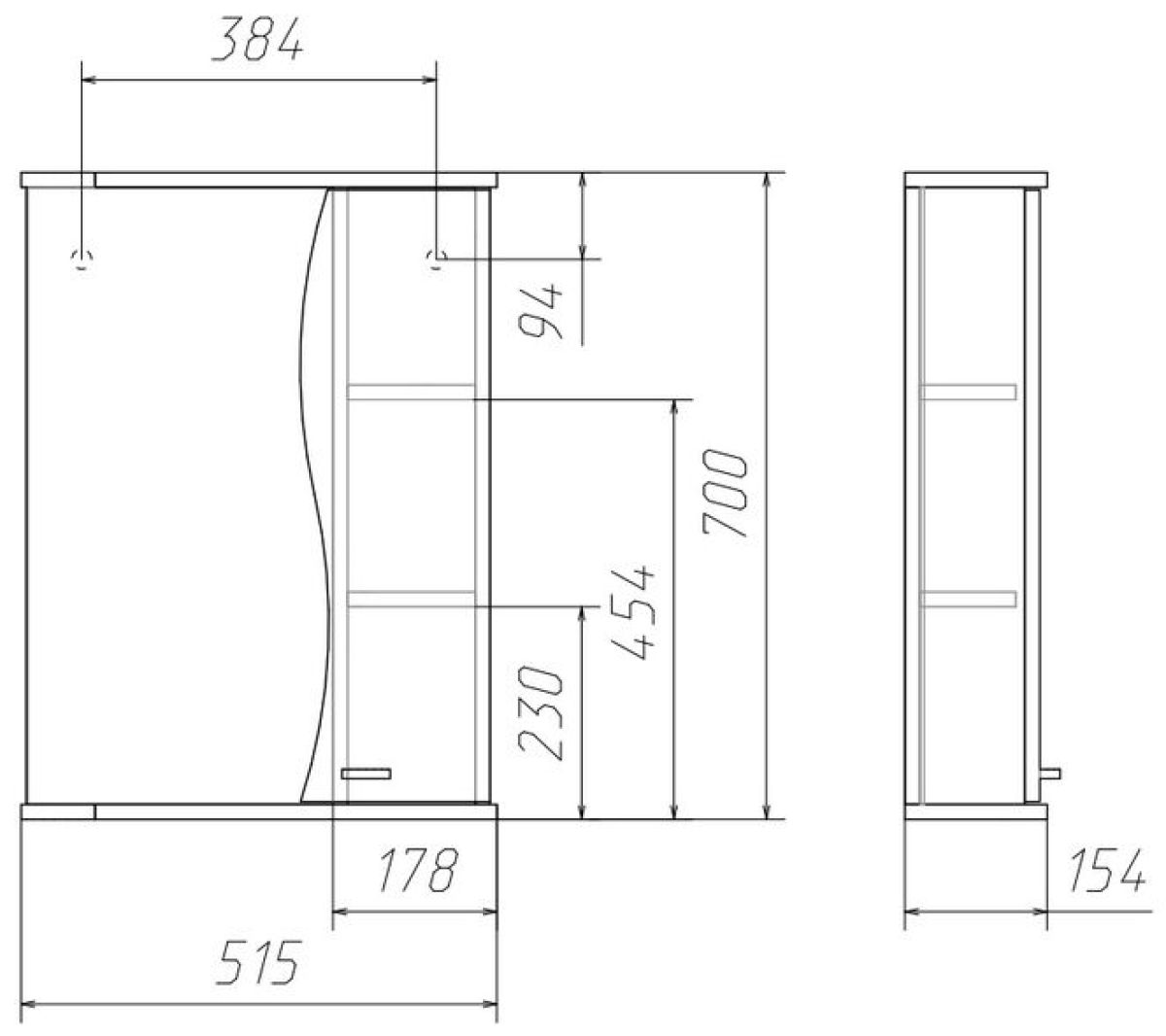 Шкаф-зеркало Волна 50 правый АЙСБЕРГ