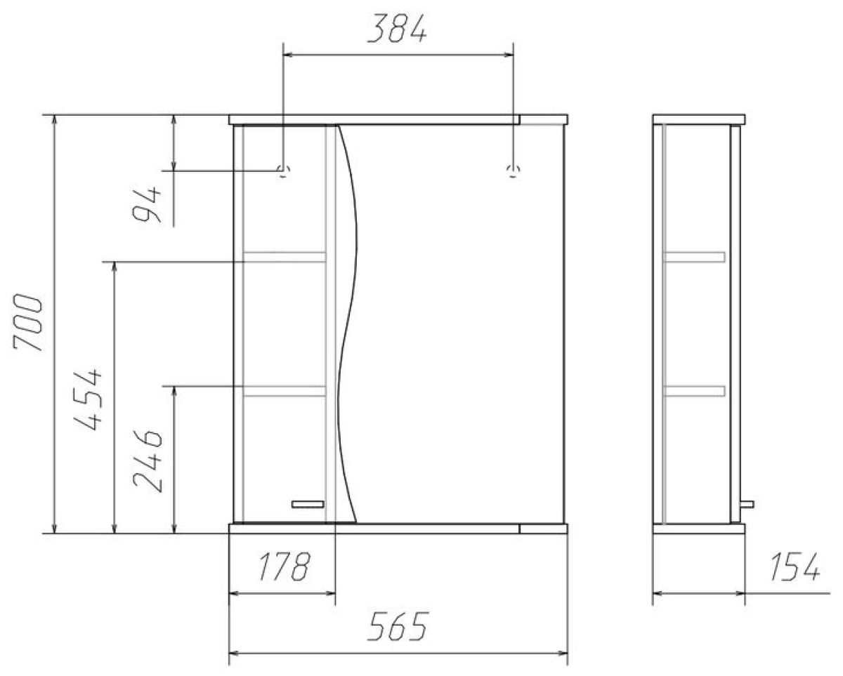 Шкаф-зеркало Волна 55 левый АЙСБЕРГ