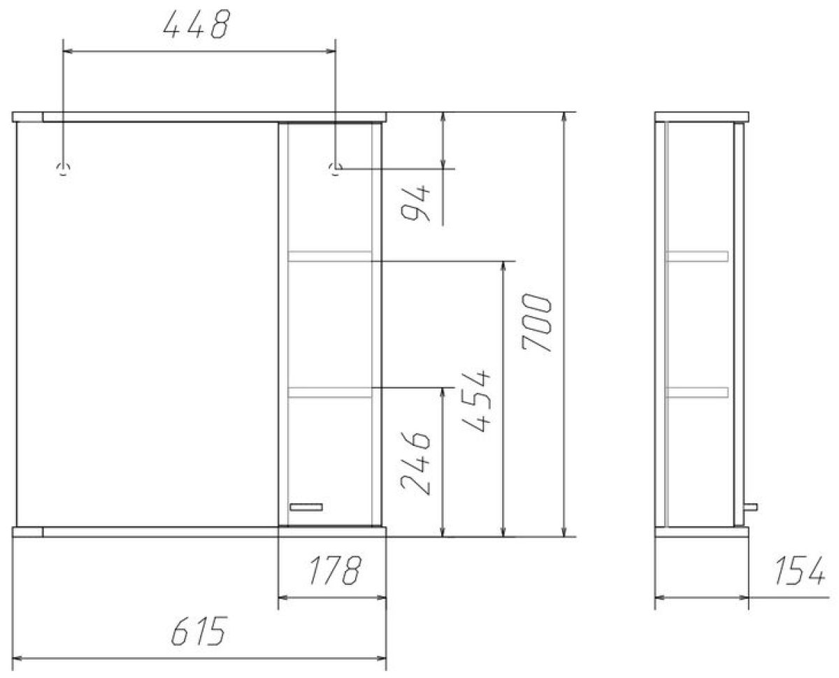 Шкаф-зеркало Классик 60 правый АЙСБЕРГ