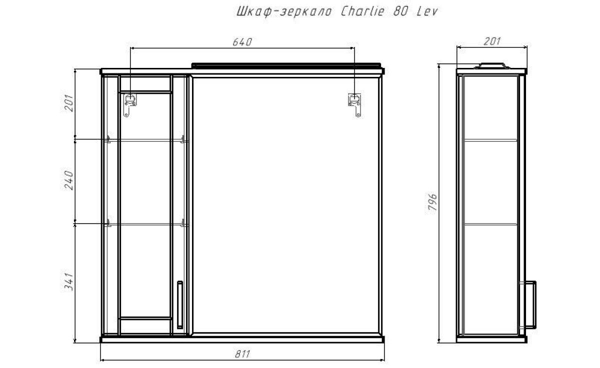 Шкаф-зеркало Charlie 80 левый Домино (DCh2516HZ)