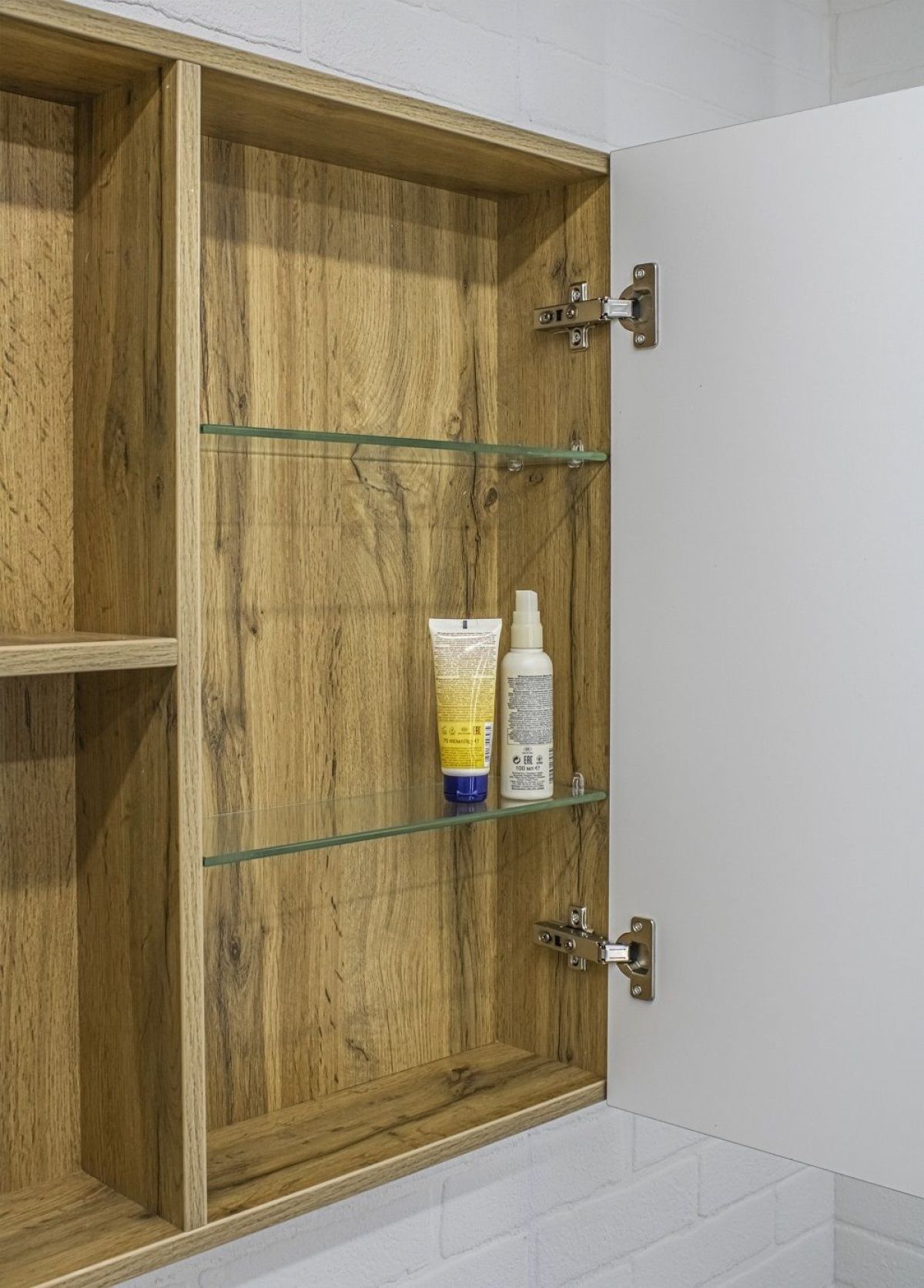 Оснащение: Петли с доводчиком, стеклянные полочки