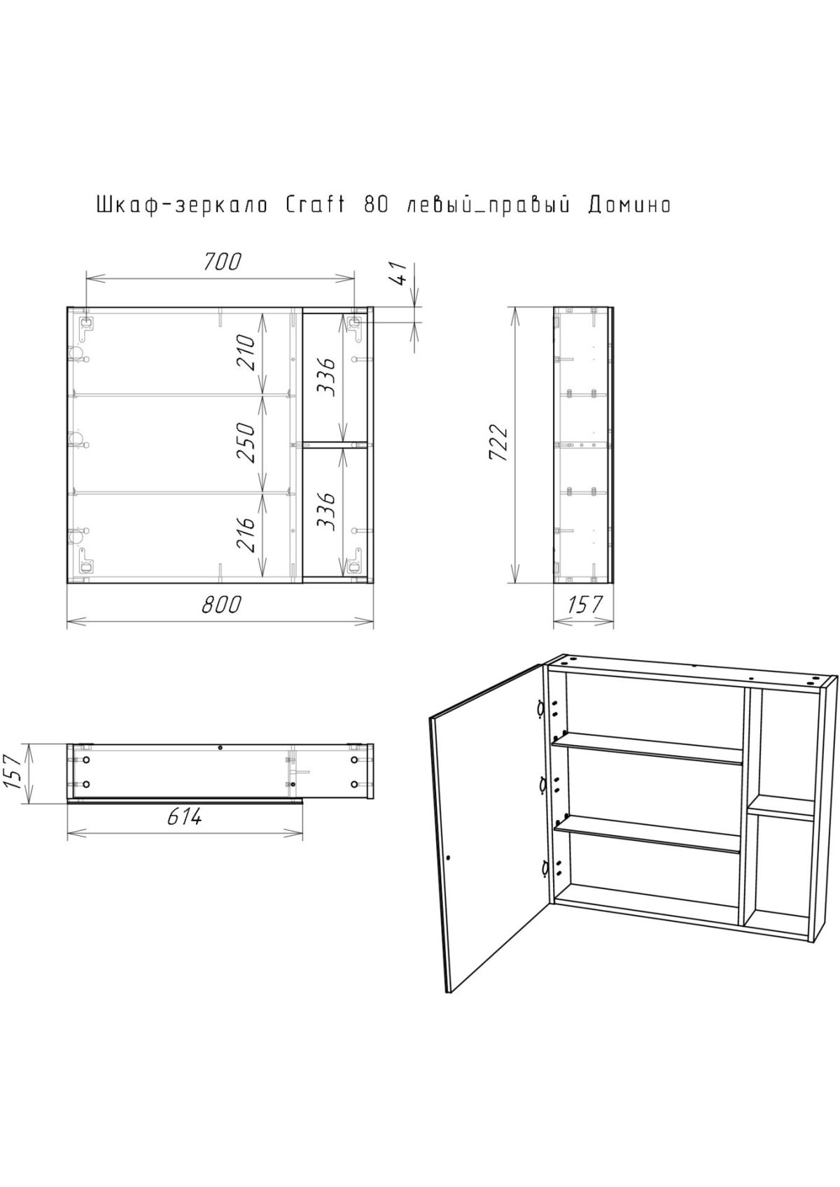Шкаф-зеркало Craft 80 левый/правый Домино (DCr2204HZ)