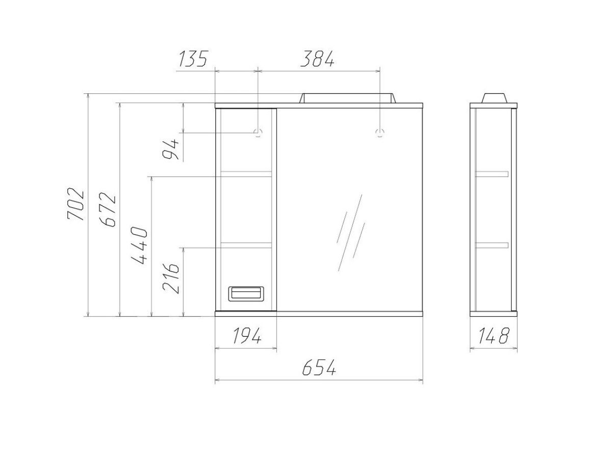 Шкаф-зеркало Cube 65 Эл. ЛЕВЫЙ Домино