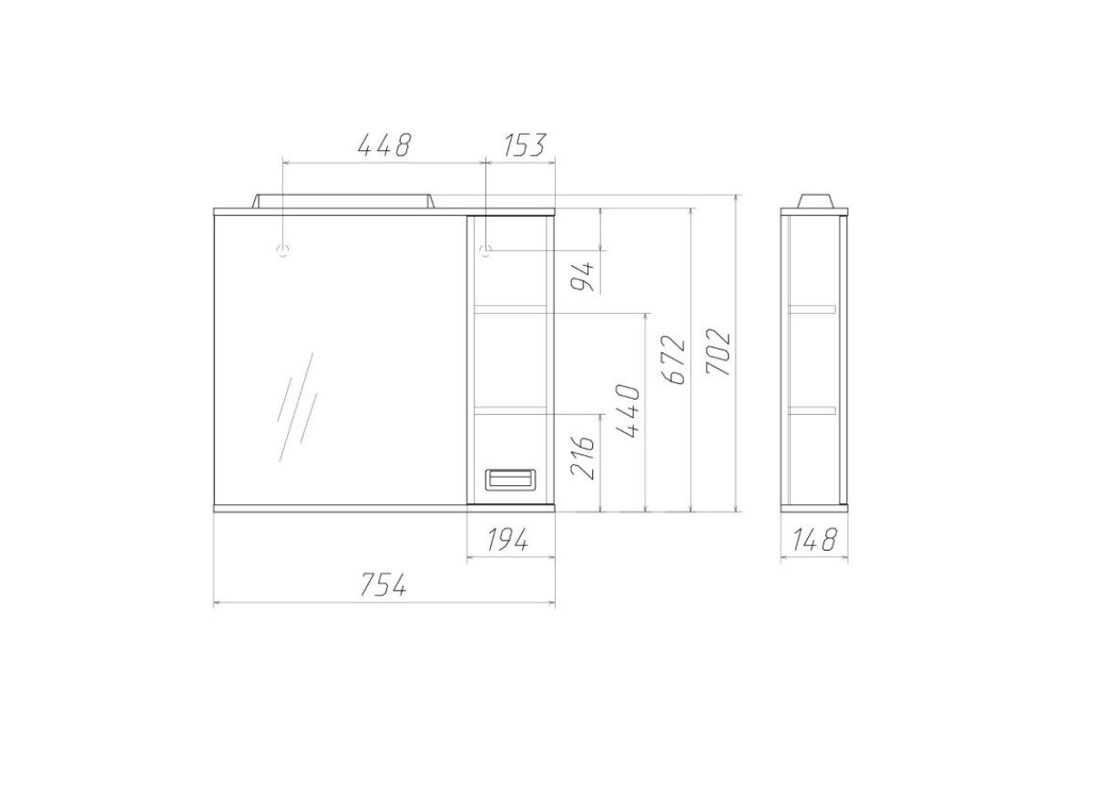 Размер (Ш*Г*В): 754*148*702 мм