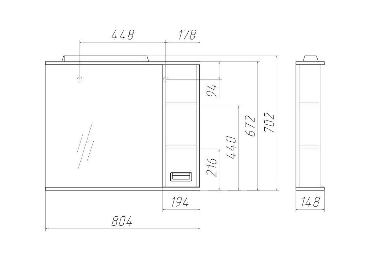 Размер (Ш*Г*В): 804*148*702 мм