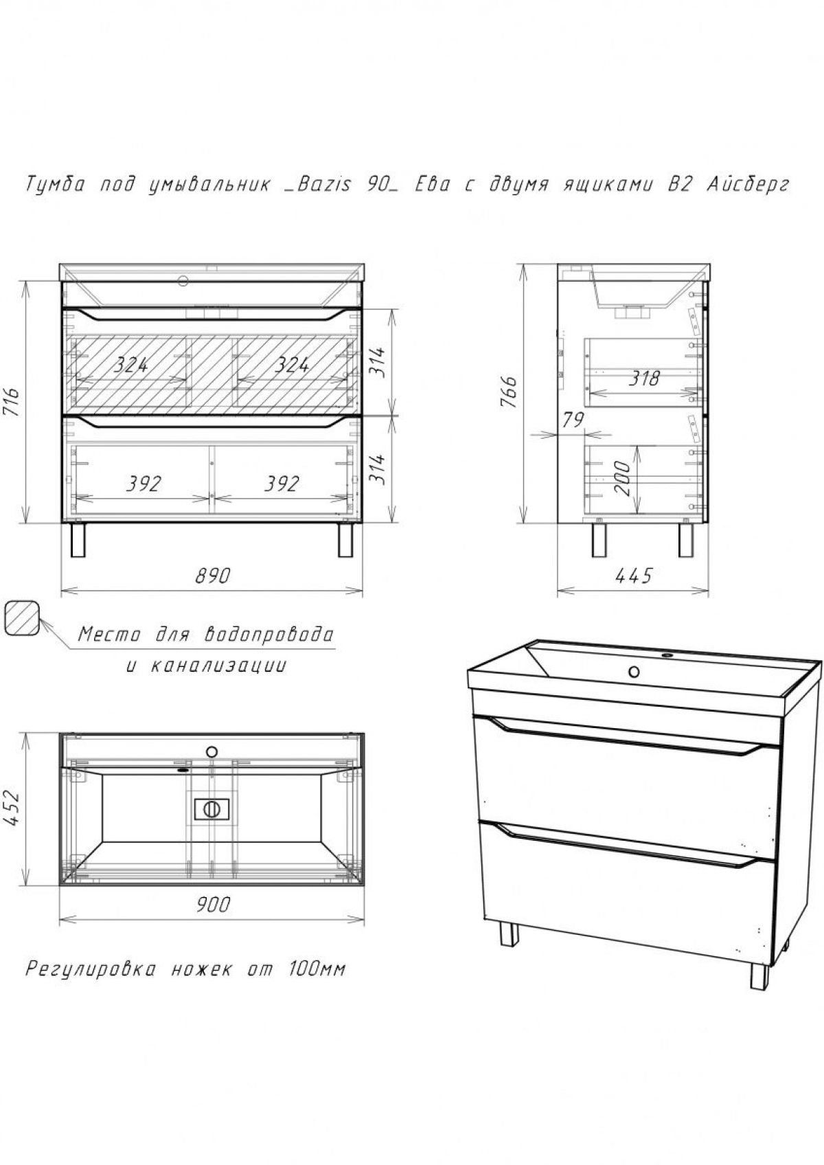 Тумба под умывальник "Bazis 90" Ева с двумя ящиками В2 Айсберг (DA5909T) вы можете купить в интернет-магазине Madimart.ru по цене 14 010 руб. Только качественная мебель от Российских брендов. Если у вас возникли вопросы или вам нужна консультация по наличию, срокам доставки, ценам, обращайтесь любым удобным способом.Вы можете оформить заказ любым удобным вам способом: