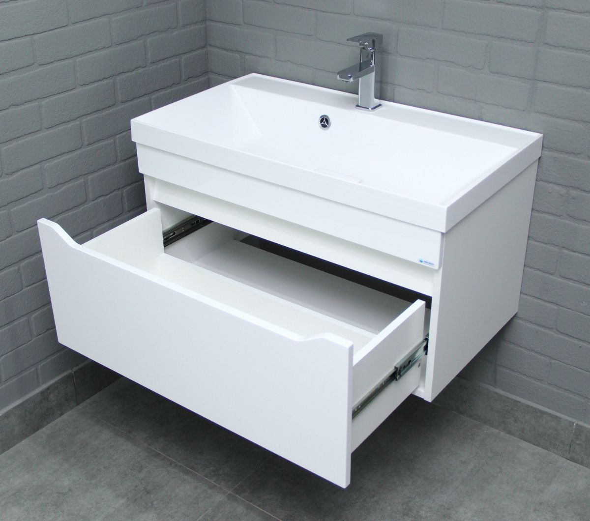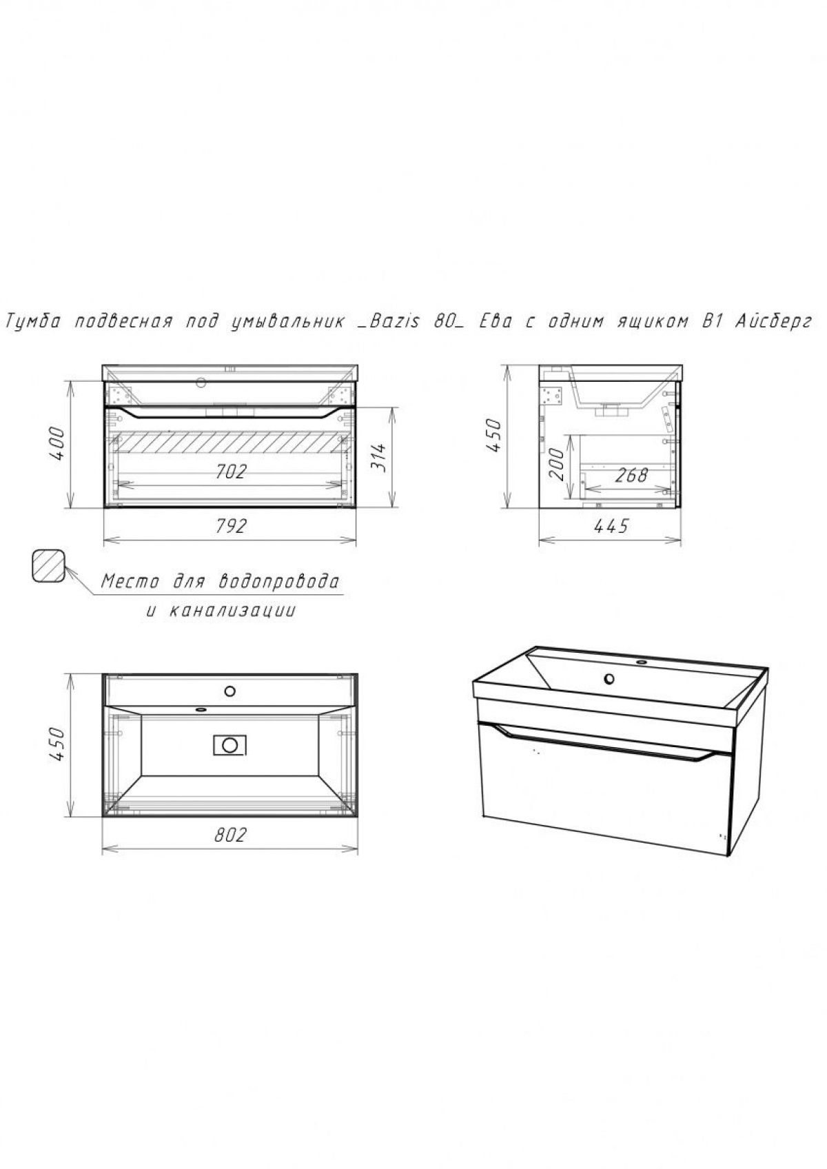 Тумба подвесная под умывальник "UNIT 80" Ева с одним ящиком В1 Айсберг (DA5903T)