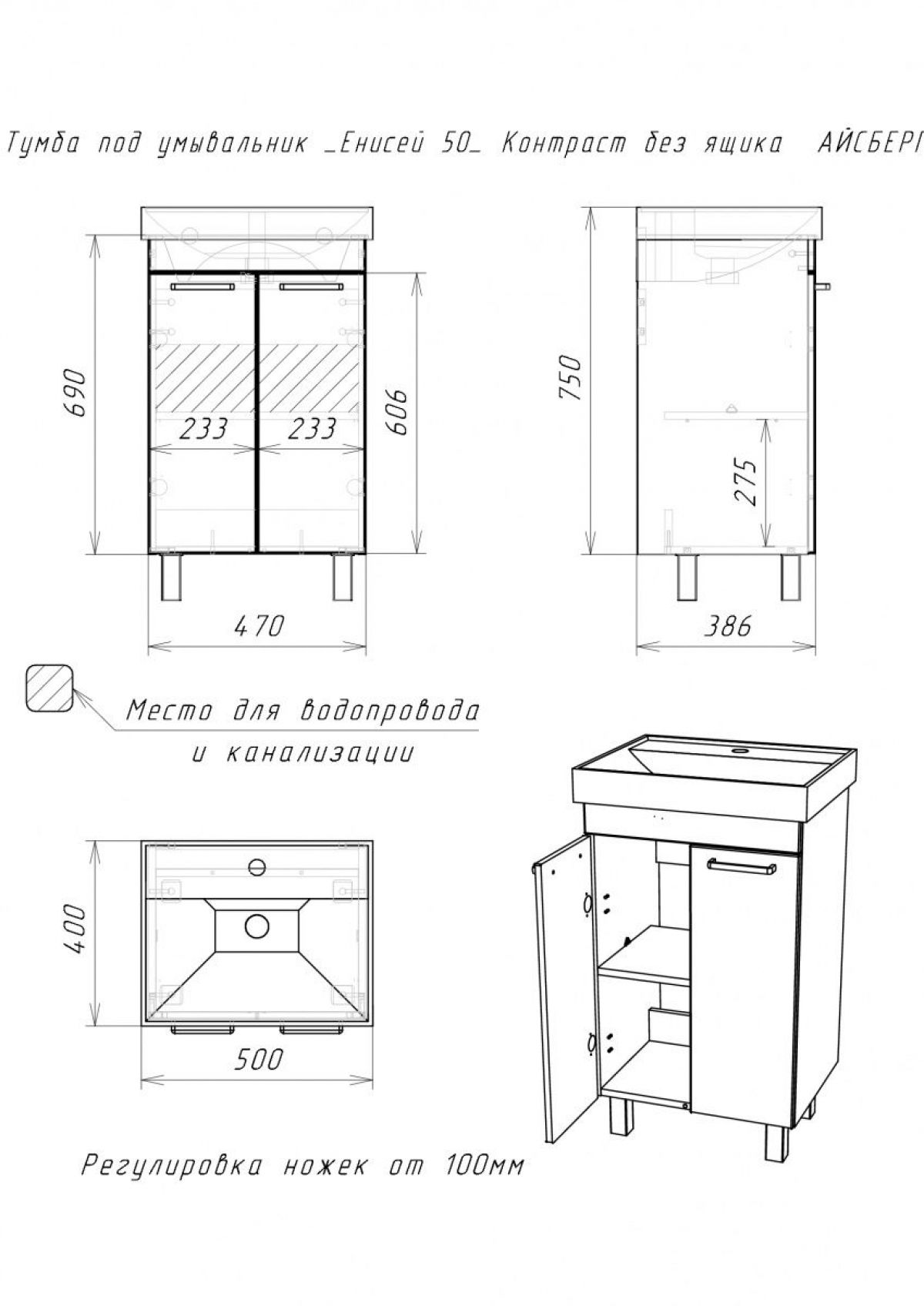 Тумба под умывальник "Енисей 50" Контраст без ящика АЙСБЕРГ (DA2708T)