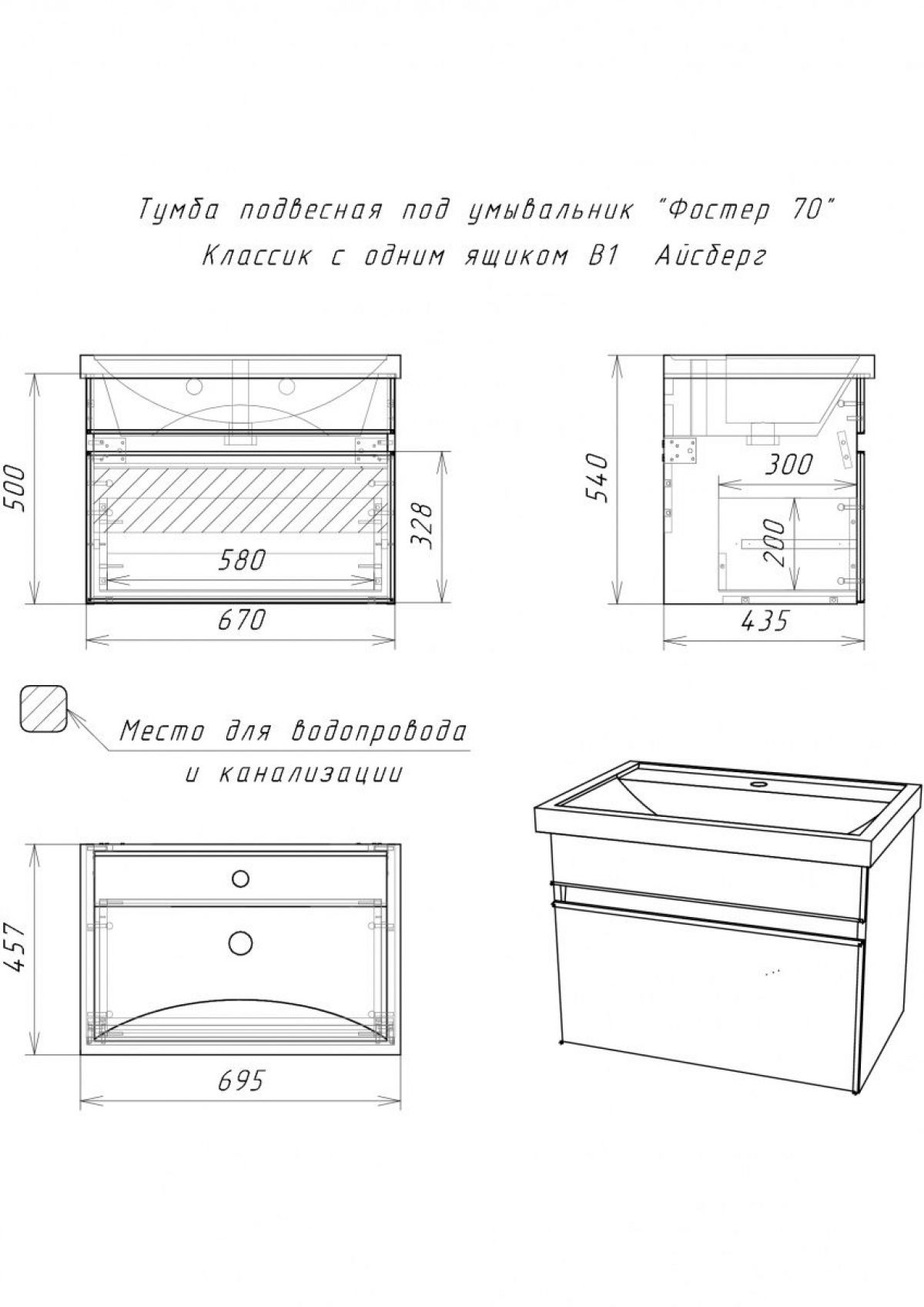 Тумба подвесная под умывальник "Фостер 70/Maria 70" Классик с одним ящиком В1 Айсберг (DA3010T)