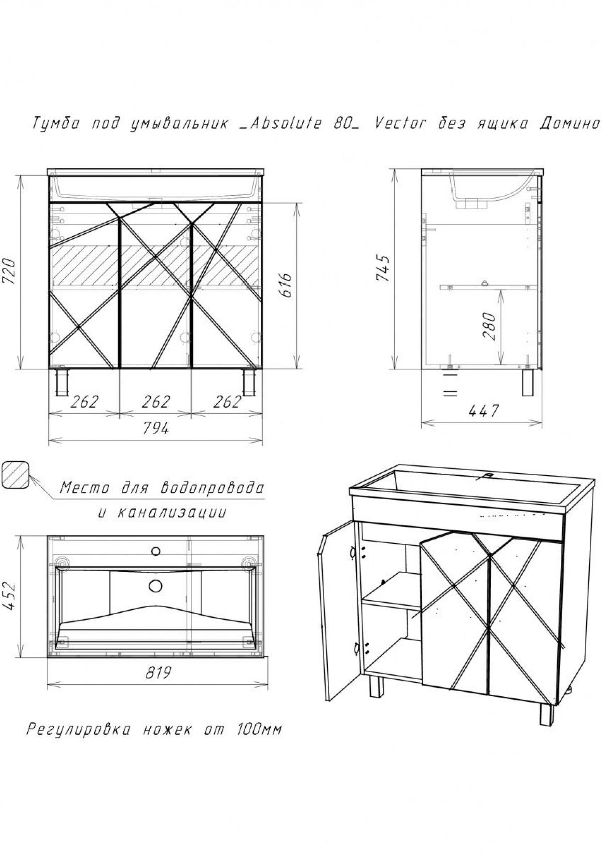 Тумба под умывальник "UNIT 80" Vector без ящика Домино (DV6604T)