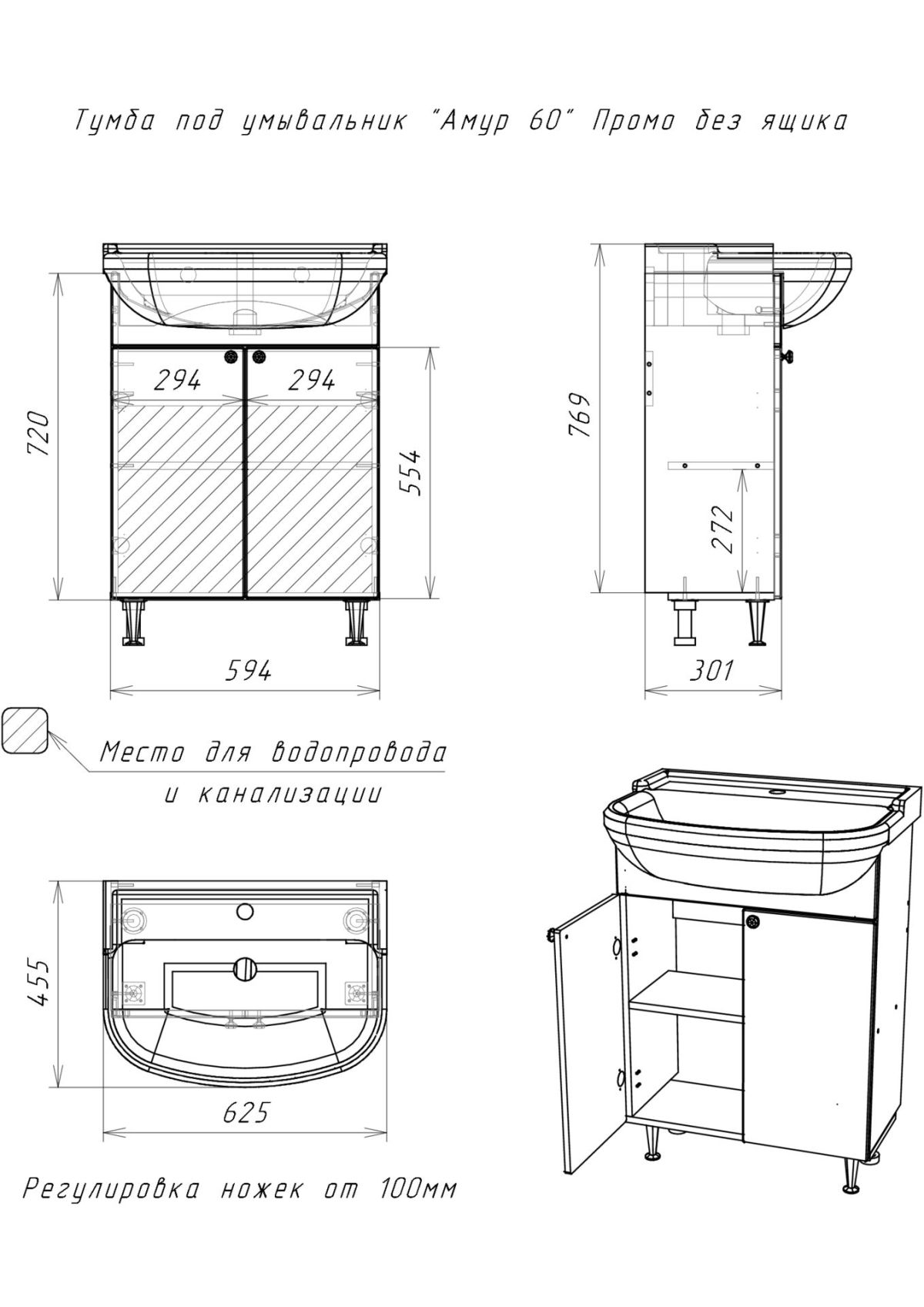 *Дополнительно необходимо приобрести Умывальник мебельный "Амур 60" Универсал