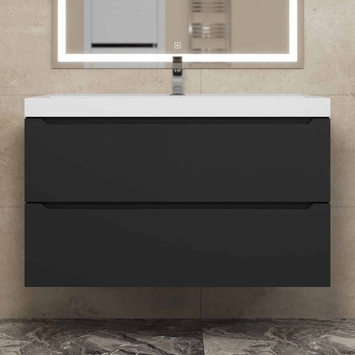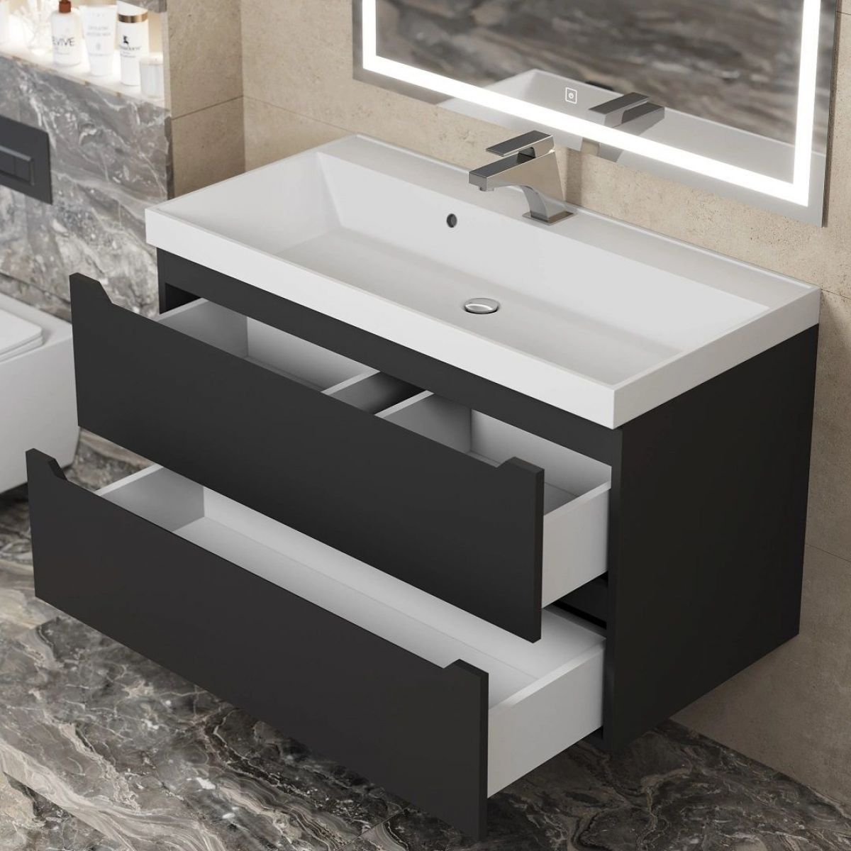 Тумба под раковину Uperwood Tanos 90 см, подвесная, черная матовая
