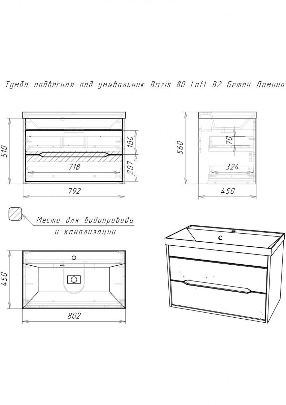 Тумба подвесная под умывальник "UNIT 80" Loft В2 Бетон Домино (DL5603T)