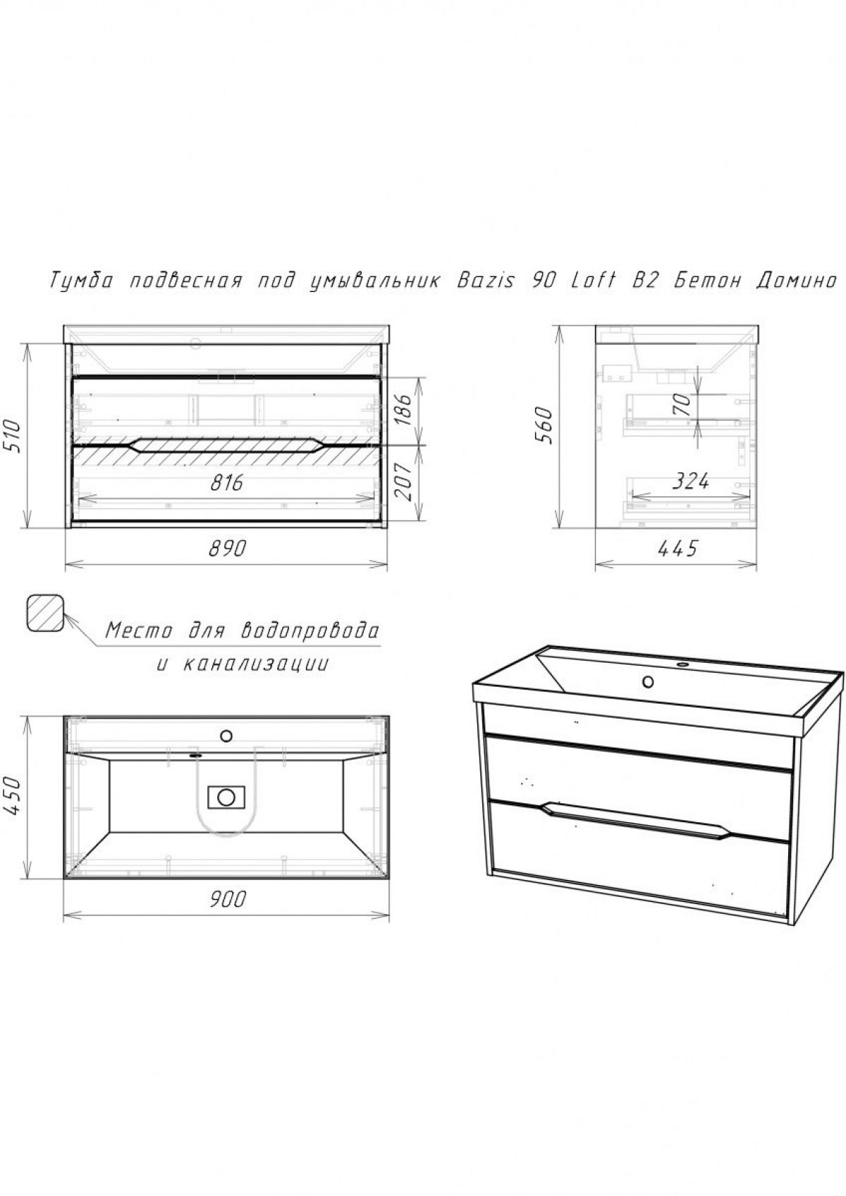 Тумба подвесная под умывальник "Bazis 90" Loft В2 Бетон Домино (DL5604T) вы можете купить в интернет-магазине Madimart.ru по цене 14 670 руб. Только качественная мебель от Российских брендов. Если у вас возникли вопросы или вам нужна консультация по наличию, срокам доставки, ценам, обращайтесь любым удобным способом.