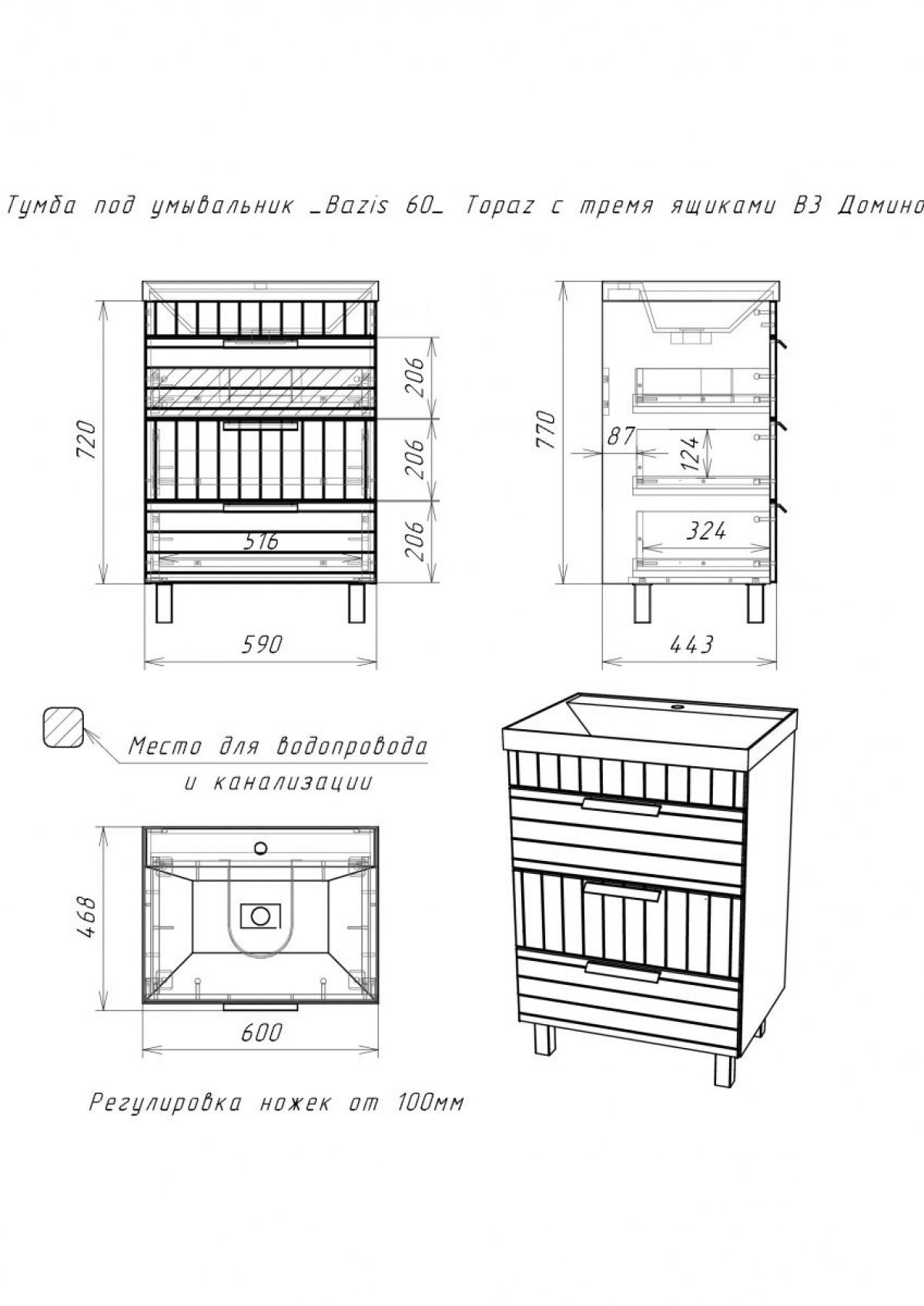 Тумба под умывальник "UNIT 60" Topaz с тремя ящиками В3 Домино (DT6401T)