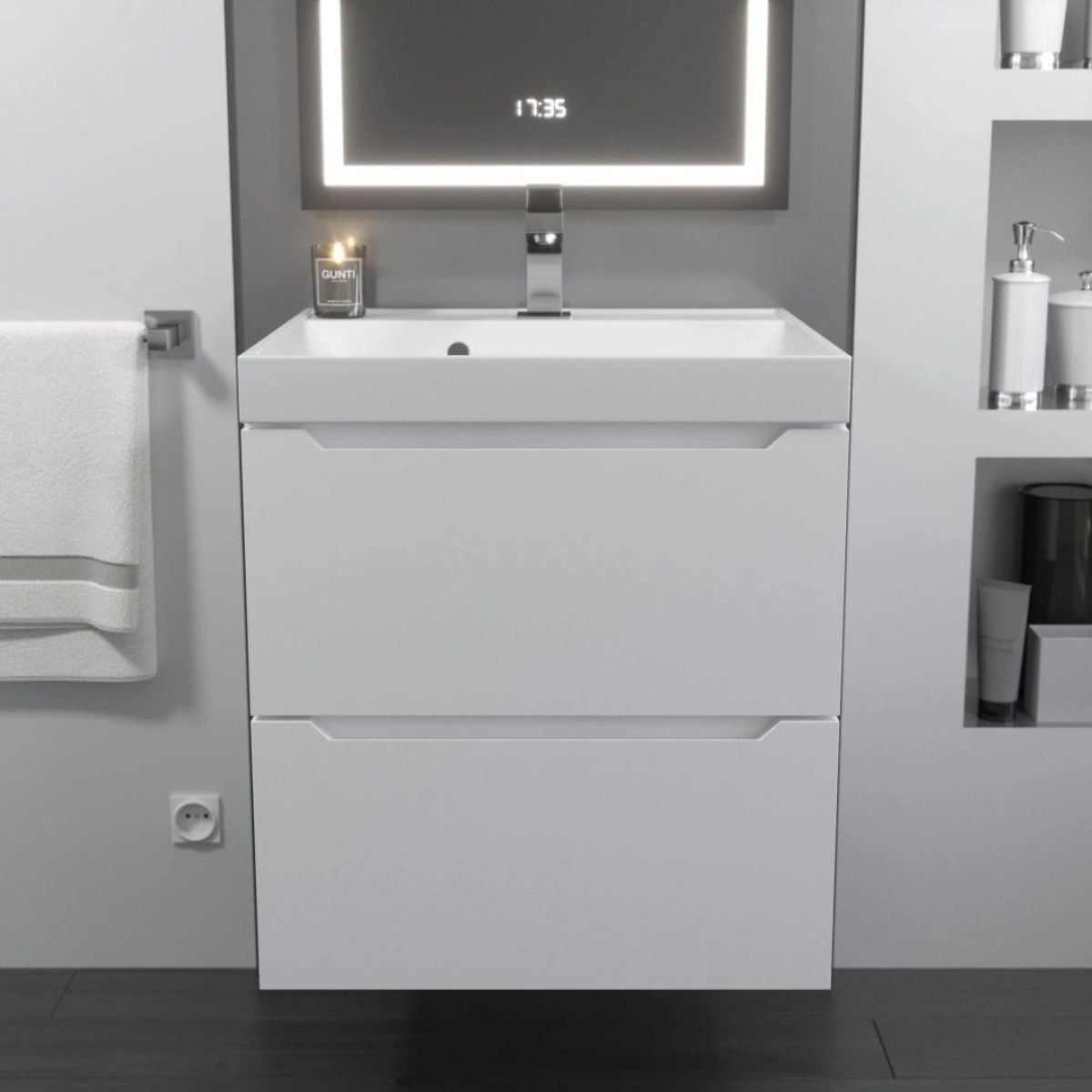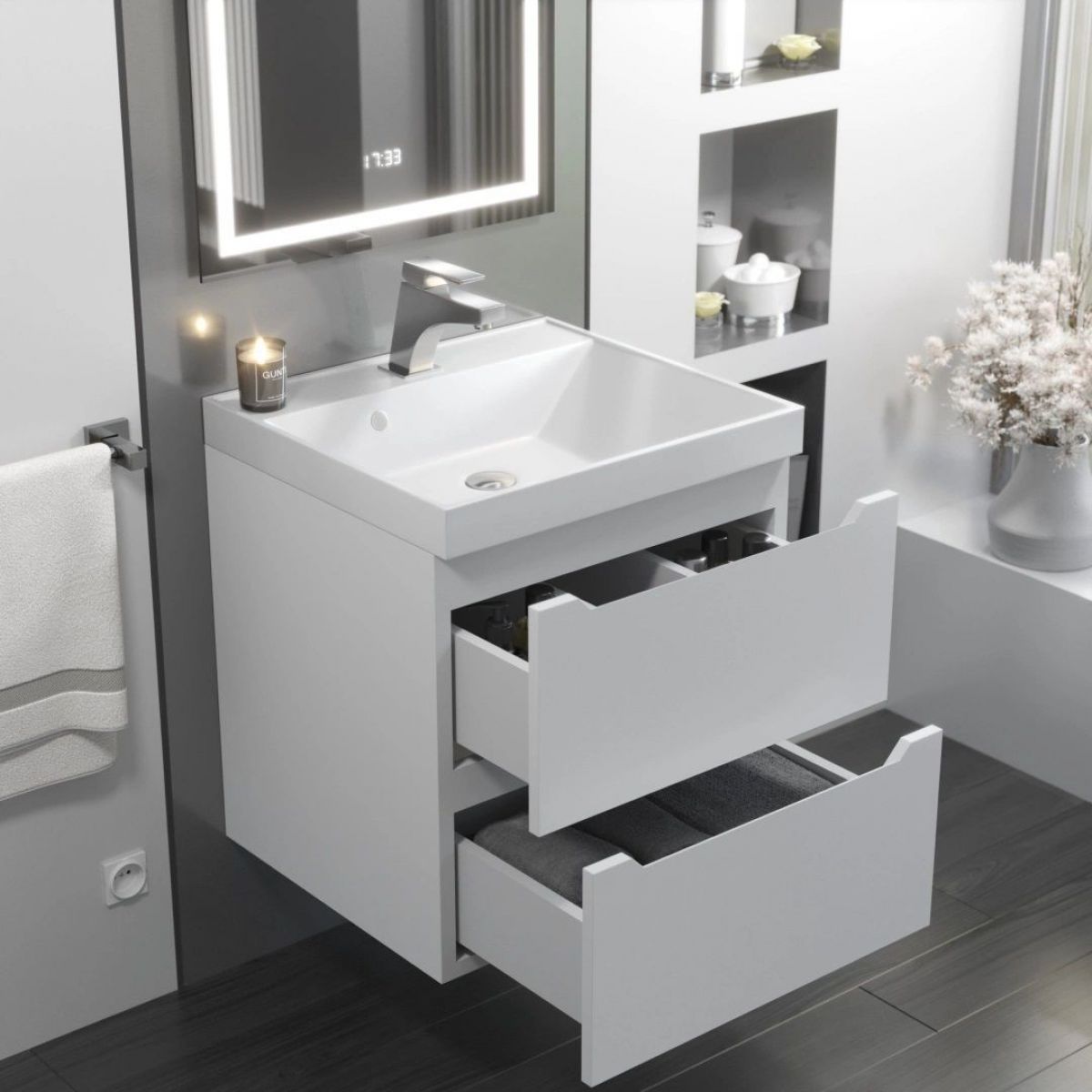 Комплект для ванной комнаты, в состав которого входит подвесная тумба Uperwood Tanos с двумя выдвижными ящиками и раковина из литьевого мрамора Classic, представляет собой функциональное, надежное и практичное решение, которое отлично впишется в любой современный дизайн ванной комнаты.