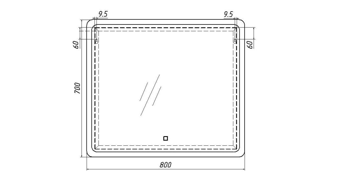 Крепления расположены горизонтально. Корпус выполнен из алюминиевого профиля, который защищает края зеркала, обеспечивает долговечность конструкции и придает изделию эксклюзивный дизайн. На всех зеркалах применяется светодиодная лента. Светодиодная подсветка отличается низким энергопотреблением, высокой безопасностью (светодиоды запитаны напряжением 12 В) и долгим сроком службы. Задняя часть зеркала закрыта специальной пластиковой панелью, что обеспечивает дополнительную защиту от пыли и влаги, и презентабельный внешний вид.