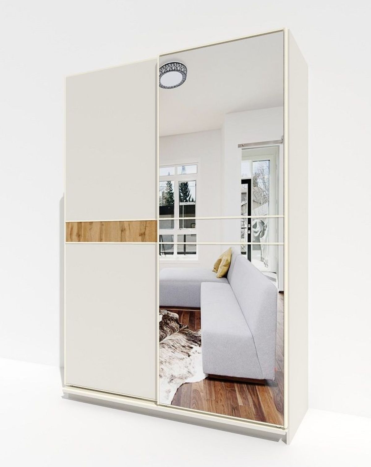 Силиконовый уплотнитель в нижнем треке способствует плавному и бесшумному открыванию дверей-купе.