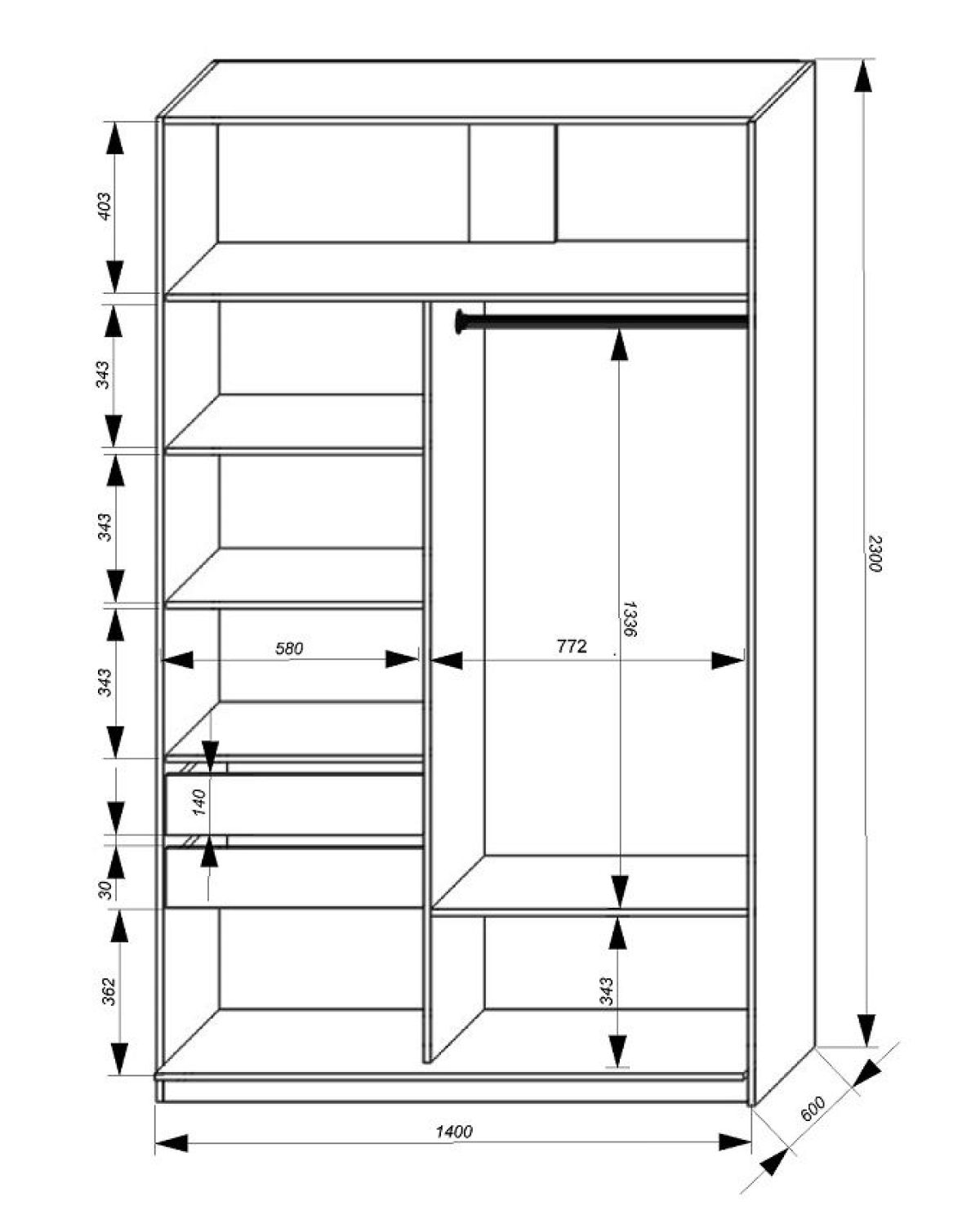Размер (Ш*Г*В): 1400*600*2300 мм