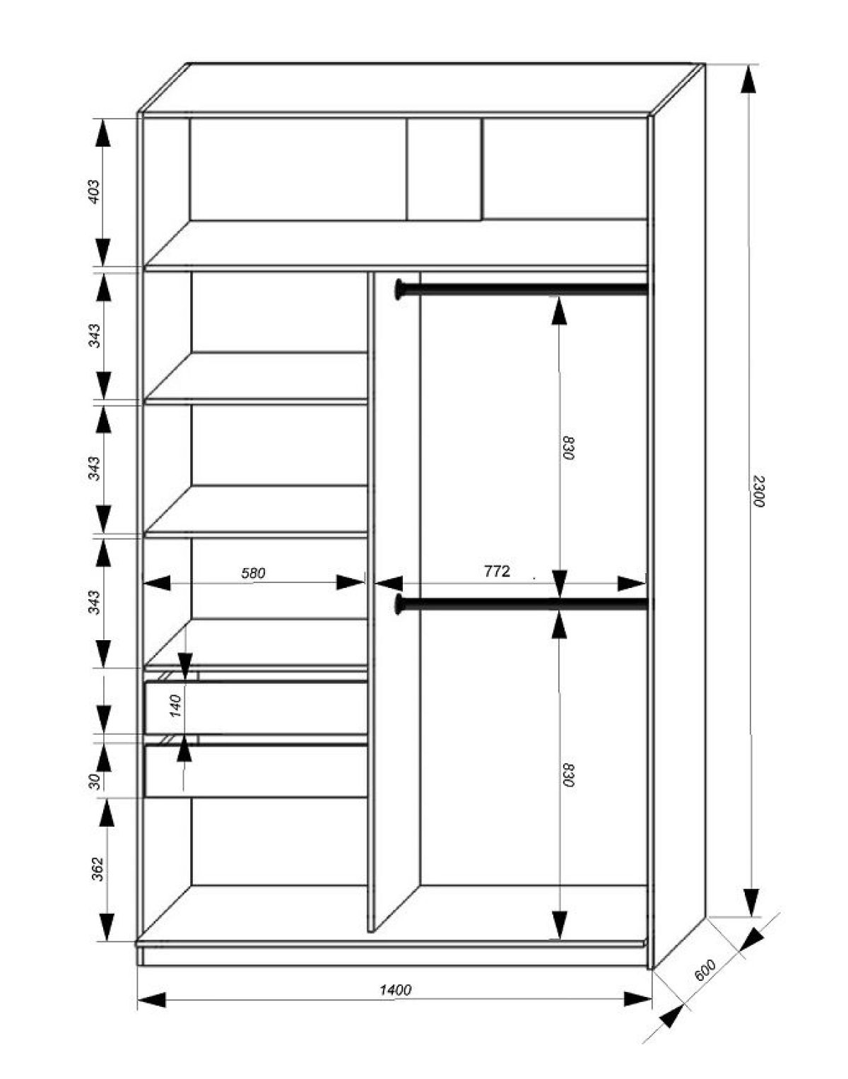 Размер (Ш*Г*В): 1400*600*2300 мм