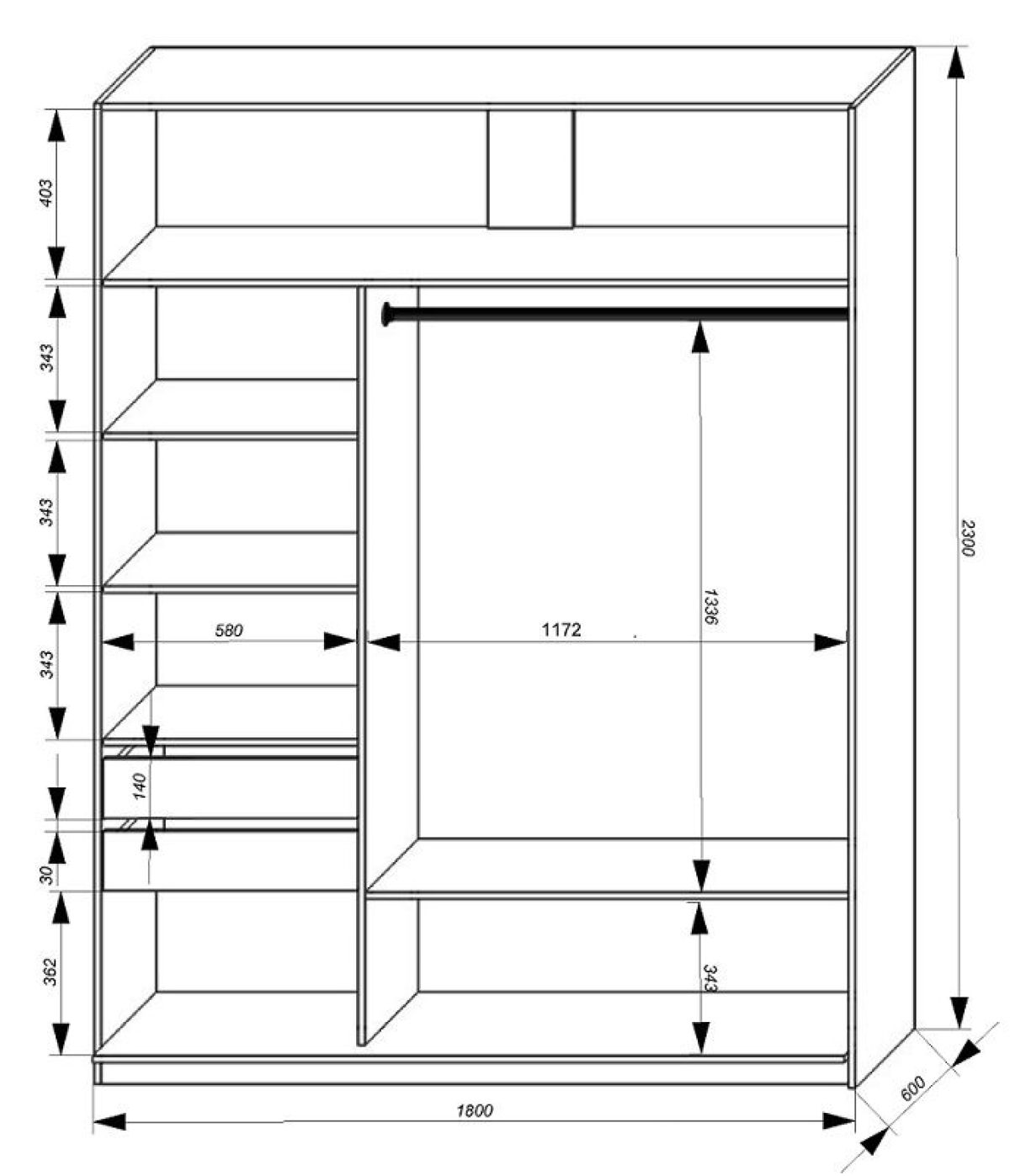 Размер (Ш*Г*В): 1800*600*2300 мм