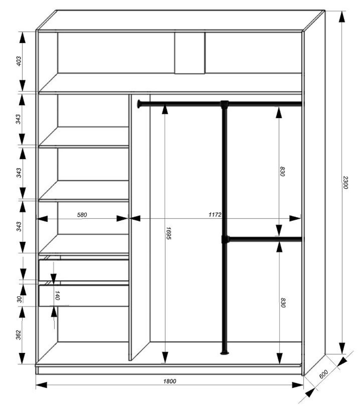 Размер (Ш*Г*В): 1800*600*2300 мм