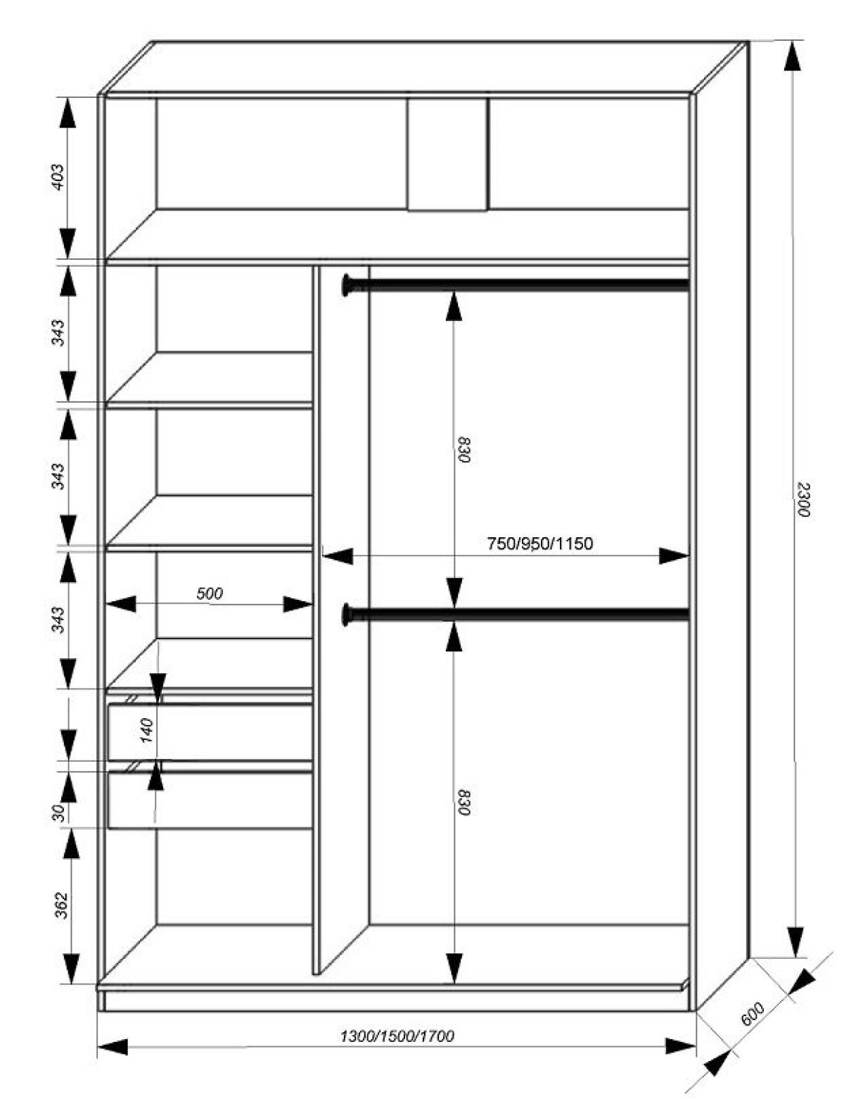 Размер (Ш*Г*В): 1700*600*2300 мм