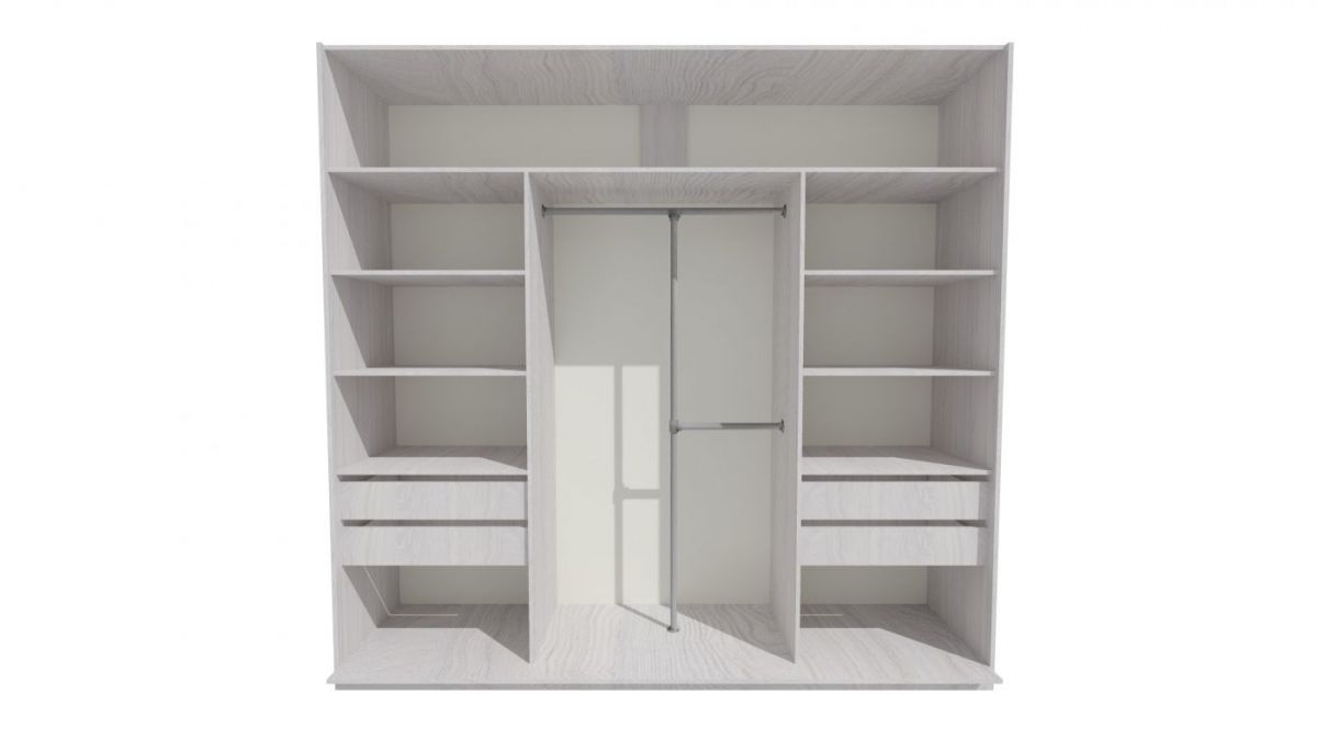 Шкаф-купе 2250 серии SILVER S4+S1+S4 B22+PL4 (по 2 ящика лев/прав+F обр.штанга) профиль «Серебро»