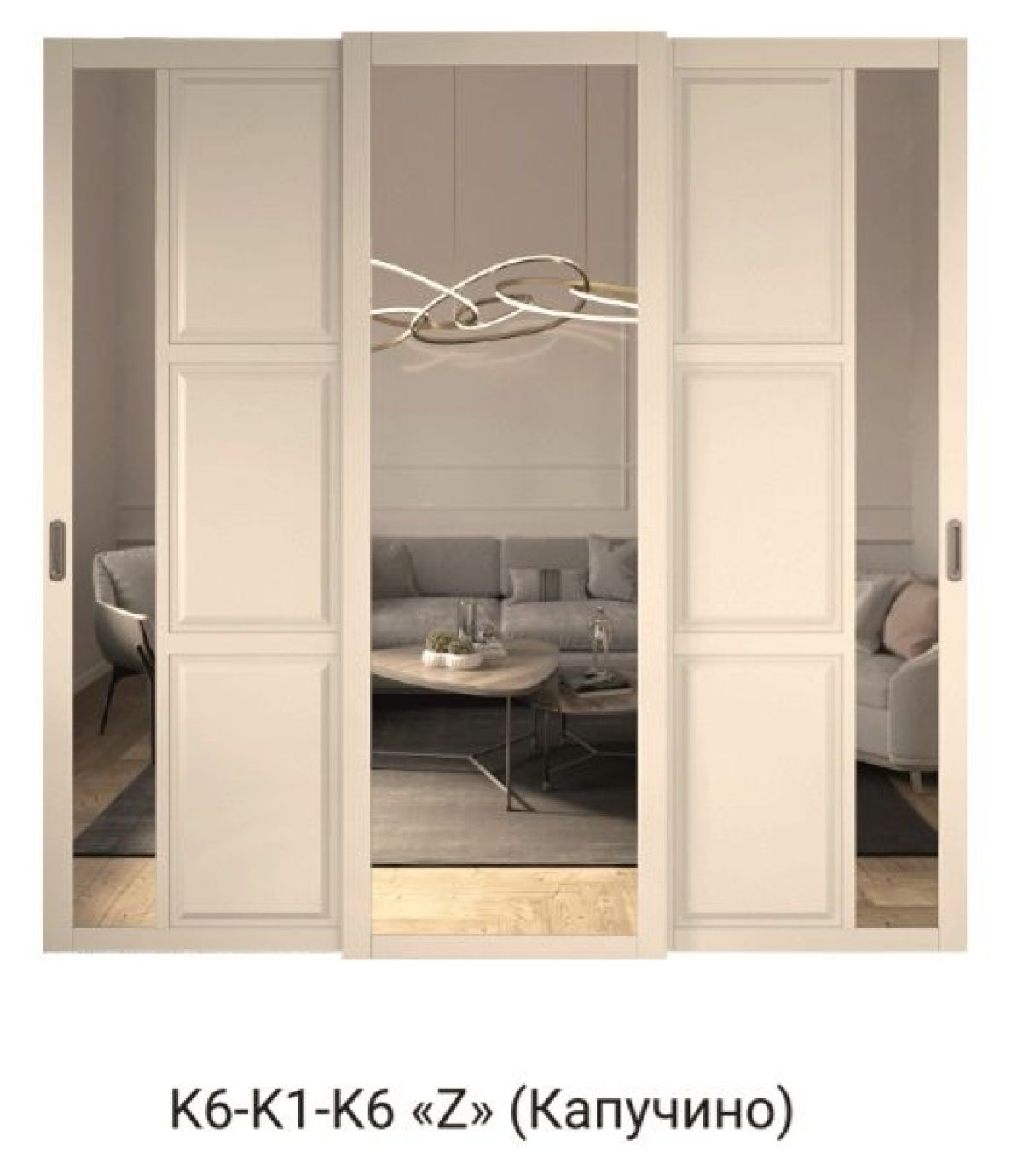 Шкаф-купе 2450 серии NEW CLASSIC K6Z+K1+K6+B22+PL1 (по 2 ящика лев/прав+1 штанга) профиль «Капучино»