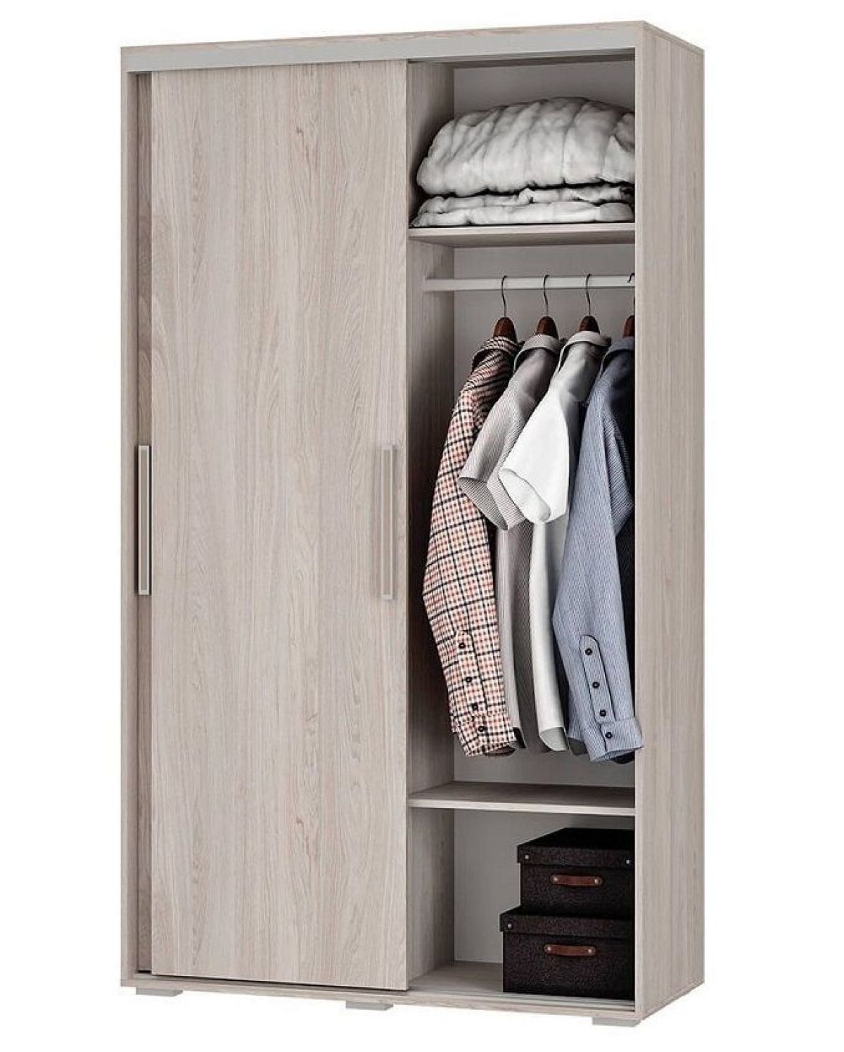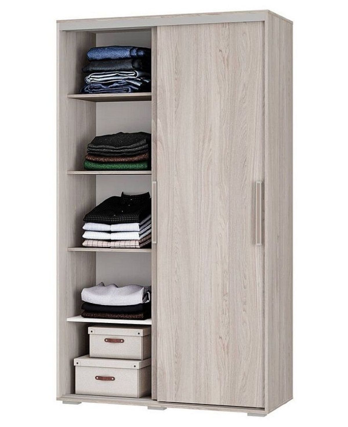 Внутри - пять просторных полок для хранения вещей и антресольная полка для головных уборов, нижняя полка для хранения сезонной обуви и горизонтальная хромированная штанга.