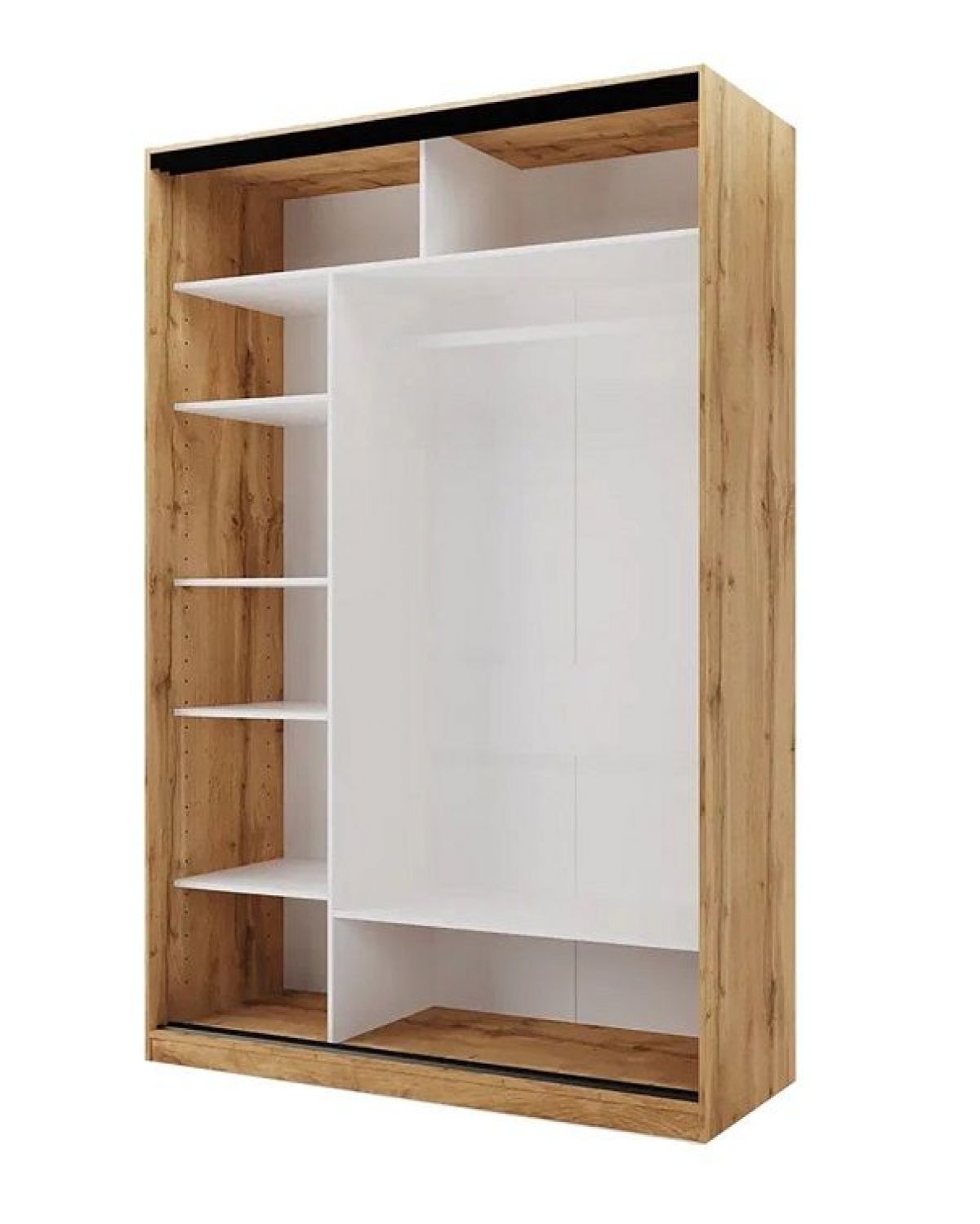 – Шкаф-купе выполнен из ЛДСП цвета Дуб Вотан с белым наполнение внутри (полки/перегородки), что позволяет быстро найти вещи и поддерживать чистоту!