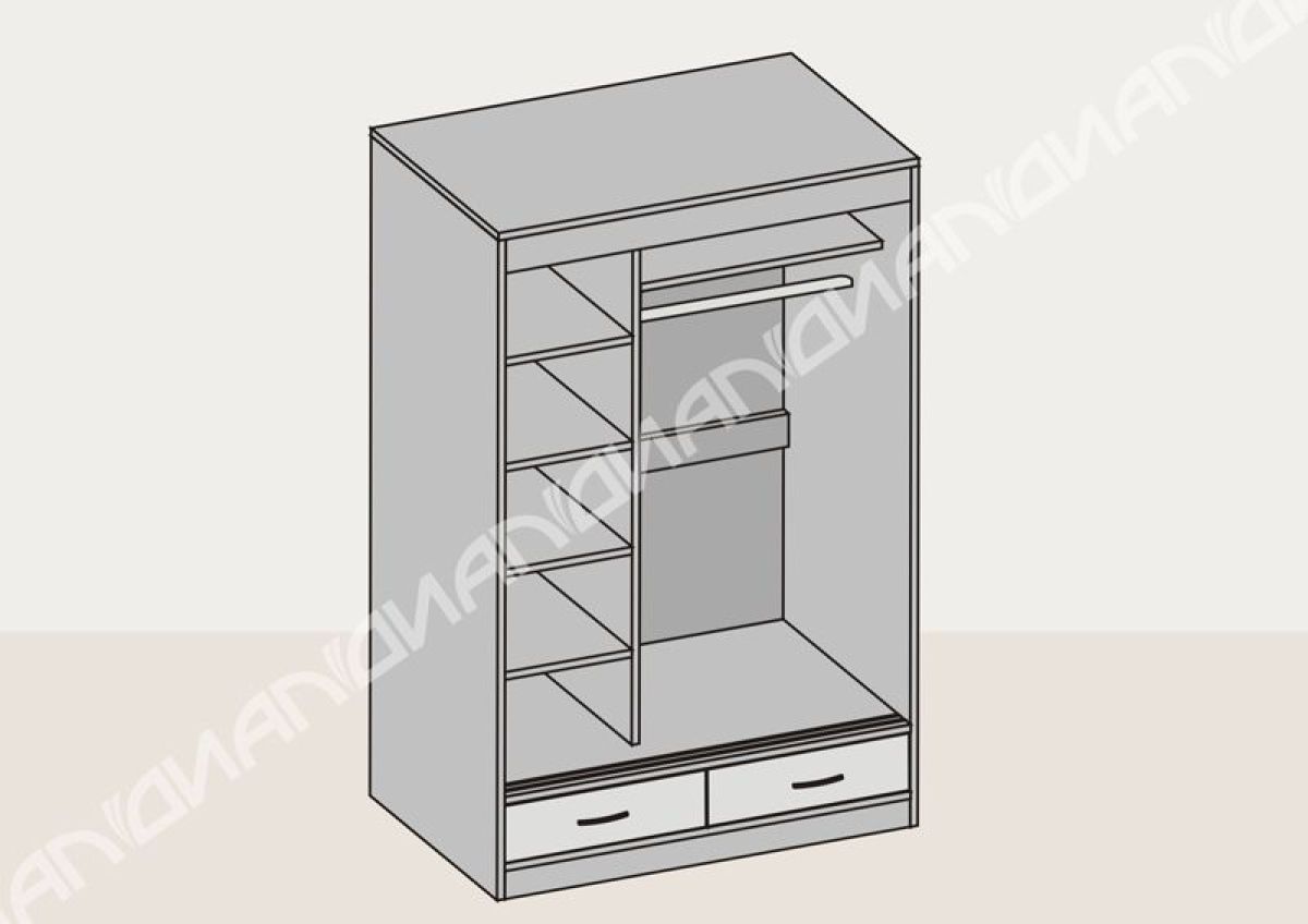 Внутри данной модели находятся полки для одежды и белья, а также штанга для плечиков. Сверху есть место для головных уборов и прочих принадлежностей. Шкаф - купе имеет два вместительных выдвижных ящика. Доступная стоимость – это еще одно преимущество данной модели.