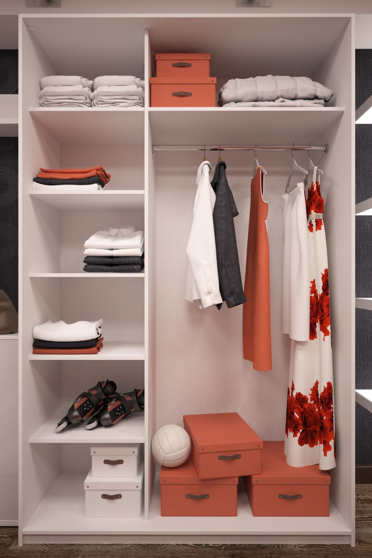 Удобный шкаф-купе для хранения одежды в идеальном порядке. Благодаря размеру и вместительности с легкостью разместит весь ваш гардероб.