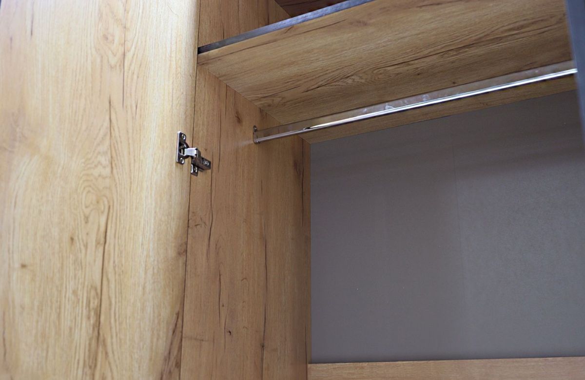 Шкаф для одежды и белья «Лофт» в современном и минималистичном стиле – это полноценный гардероб, в котором Вы найдёте всё необходимое для компактного хранения одежды, обуви, постельного белья и текстиля всей семьи: полки, штанга под плечики, ниши для крупных предметов. Фасад шкафа оформлен в общем стиле серии «Лофт».
