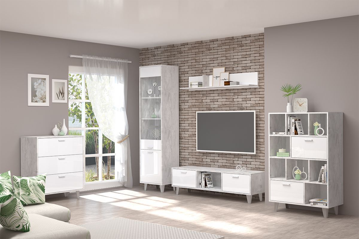 Пенал Эго ПС1, с 2-дв. ( на ножках) Бетон светлый/Белый глянец