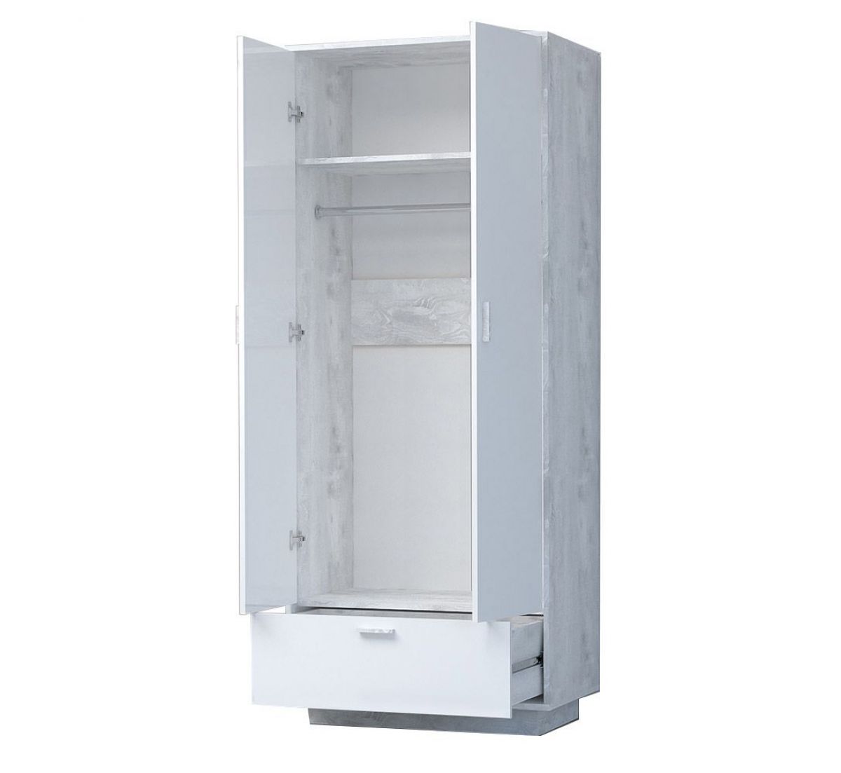 Эго Шк-1 Шкаф с 2дв, 1ящ (бетон светлый/белый глянец) цоколь