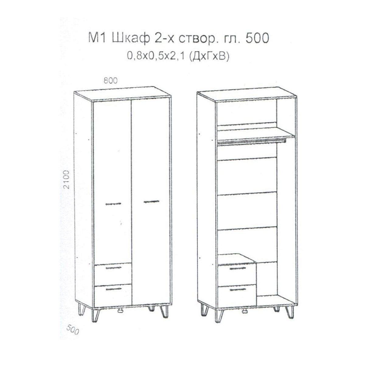 Колибри М1 Шкаф 2-х ств., 2ящ (дуб золотой-железный камень)