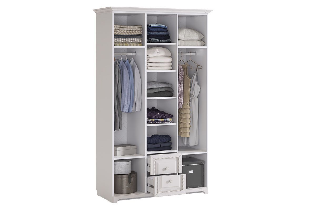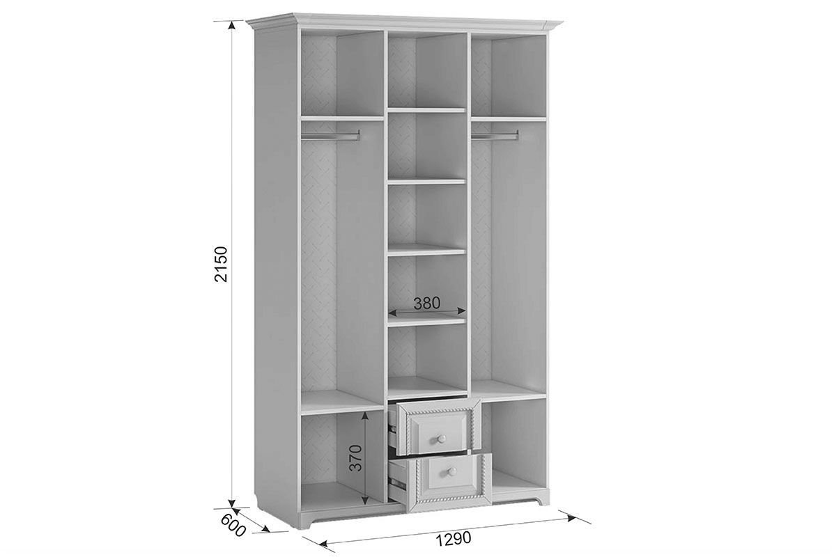 Состоит из: полок под вещи, штанги для одежды, выдвижных ящиков для мелких вещей.