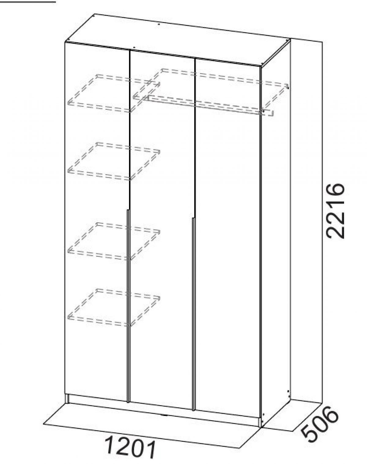 Размер (Ш*В*Г): 1201*2216*506 мм