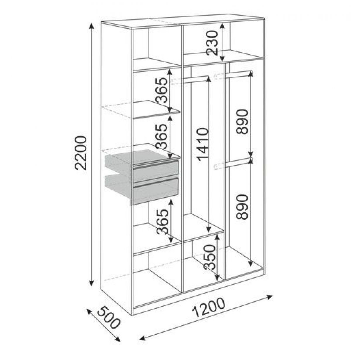 4. Шкаф имеет два отделения со штангами для длинных и коротких вещей; секцию с полками и ящиками для мелочей.
