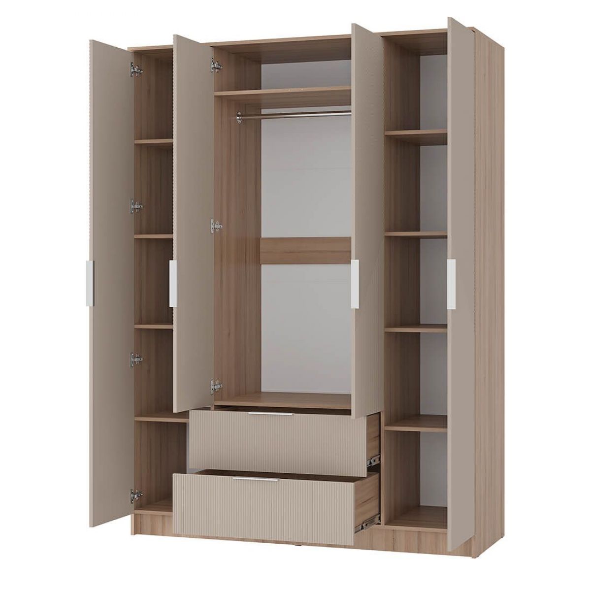 Шкаф четырёхстворчатый (ШК-11) имеет пять удобных полок по бокам для хранения одежды.