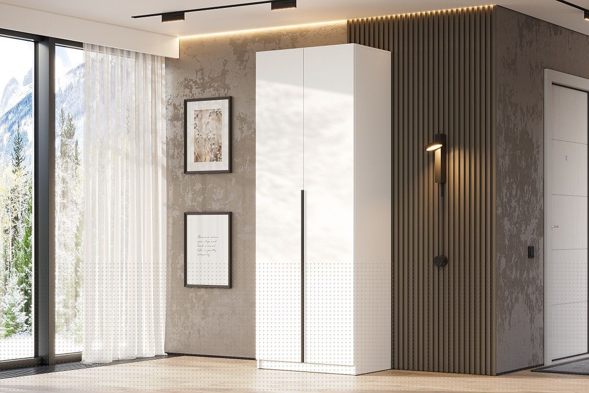 Шкаф ШК-5 + 2 полки (800) Белый текстурный