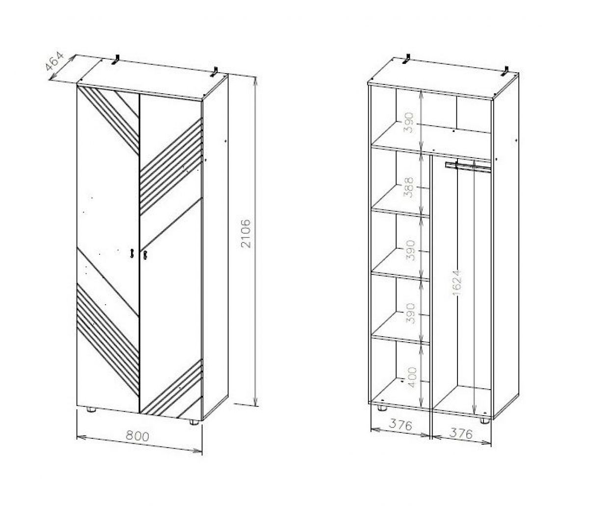 Габариты модуля (ШхВхГ): 800х2106х464 мм