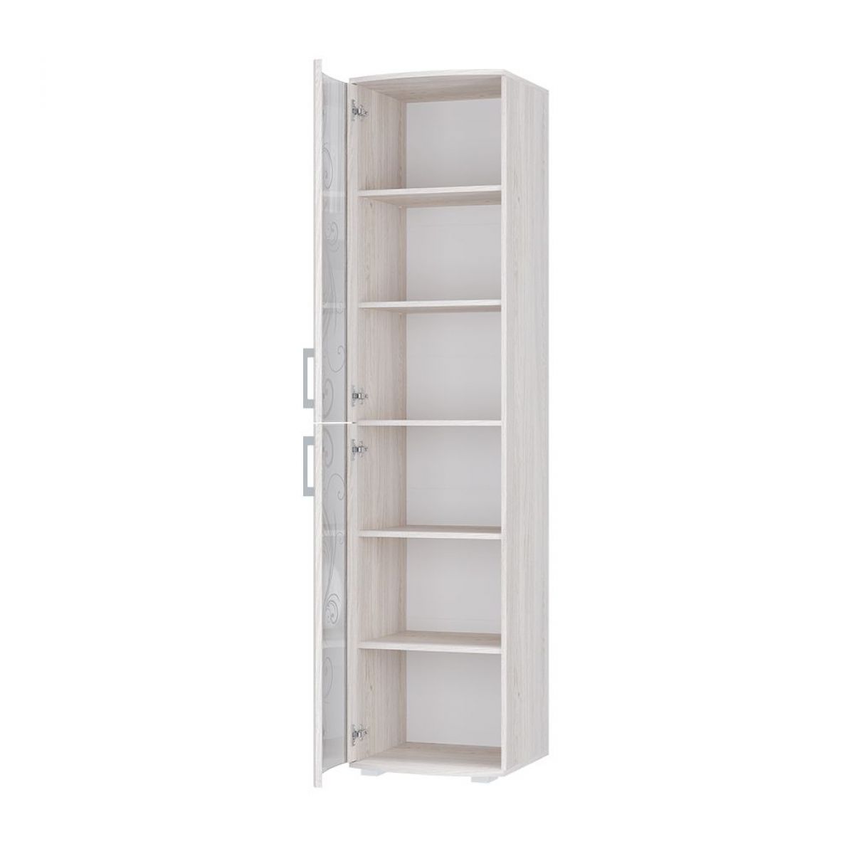 Оттенок "белый ясень" в сочтании с растительным принтом придают помещению свежесть и легкость. Толщина кромки - 0,4 мм. Стекло 4 мм - тонированное, гнутое, пескоструйная обработка. Регулируемые пластиковые опоры высотой 20 мм. Рамочный профиль МДФ. Ручки накладные пластик 128-160 мм. Максимальная нагрузка на полку - 10 кг.