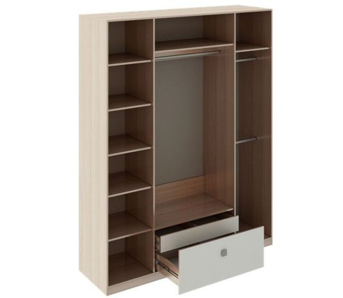 4. Шкаф имеет два отделения со штангами для длинных и коротких вещей; 2 ящика с разделителями по середине и секцию с 5 полками.