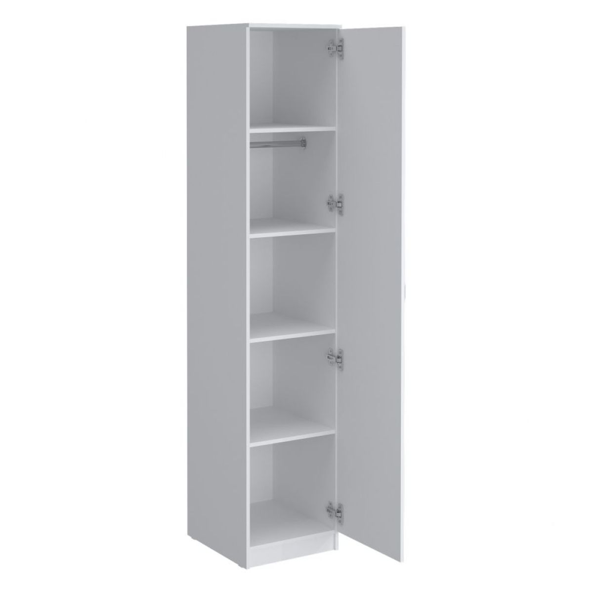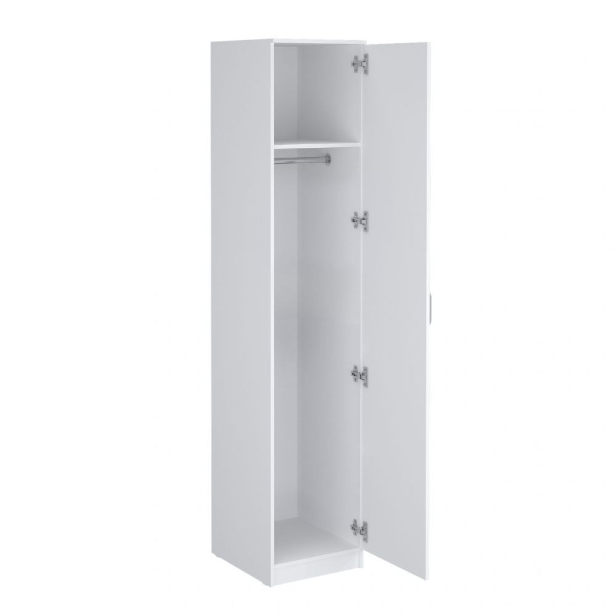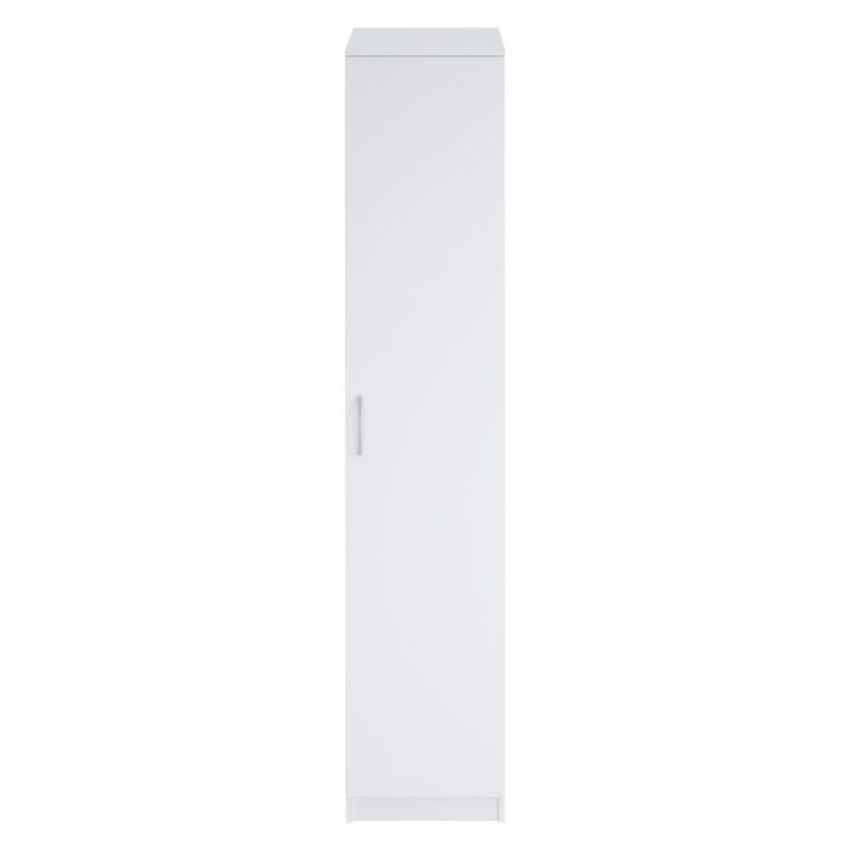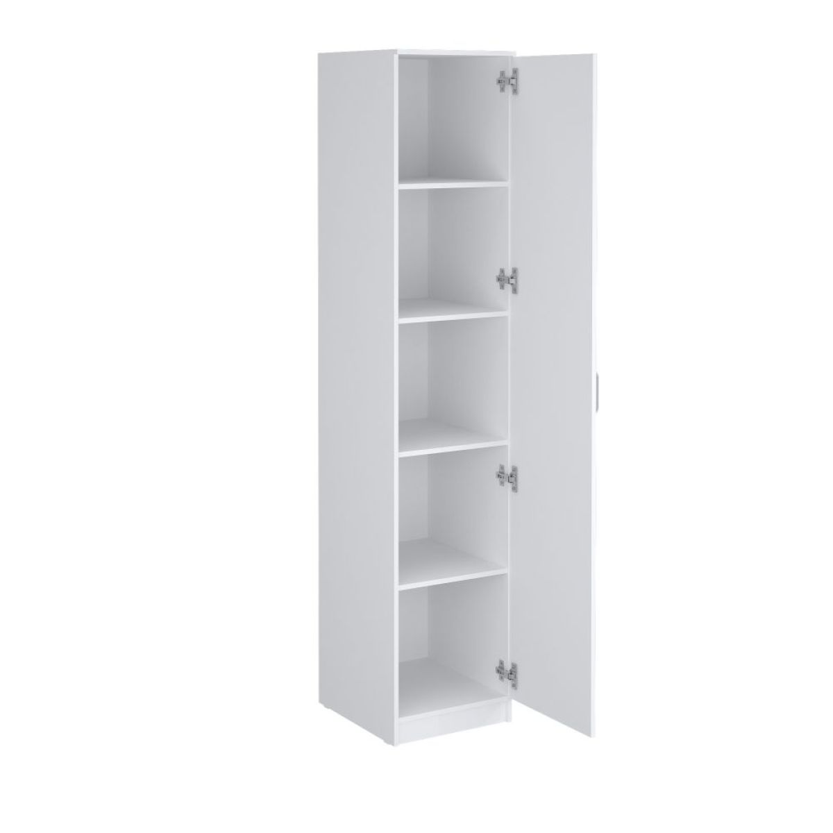 Универсальный пенал с полками и штангой - можно установить все полки и использовать для хозяйственных вещей, можно совместить - и удалив несколько верхних полок, применить штангу для вешалок с короткими вещами или же сделать полностью гардеробный пенал для длинных вещей на плечиках - уставив только верхнюю и нижнюю полку.